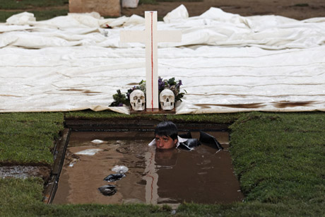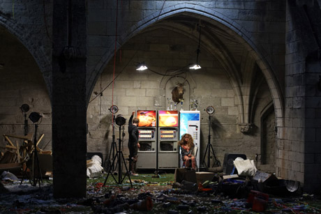 Il y a quelque chose de pourri au royaume du Danemark. Définitivement. Metteur en scène impétueux, Vincent Macaigne s’offre le luxe d’exploser le texte le plus emblématique de Shakespeare. Dans un décor de fin de partie, tout le monde a la gueule de bois. Hamlet, lui, est une bête assoiffée de sang et de vérité, plongeant jusqu’aux paupières dans la tombe pleine de boue de son père assassiné par Claudius. L’image romantique du personnage est électrifiée au profit de convulsions et d’éructations endiablées formant le geste théâtral de la bande à Macaigne. En chef d’orchestre survolté, il harangue le public dès son entrée, depuis le haut des gradins, faisant monter la sauce et augmentant avec furie le désordre ambiant. Tout commence par un massacre à la tronçonneuse, sanguinolent à souhait. Une violence puisée dans le conte danois de Saxo Grammaticus qui aurait inspiré Shakespeare himself !