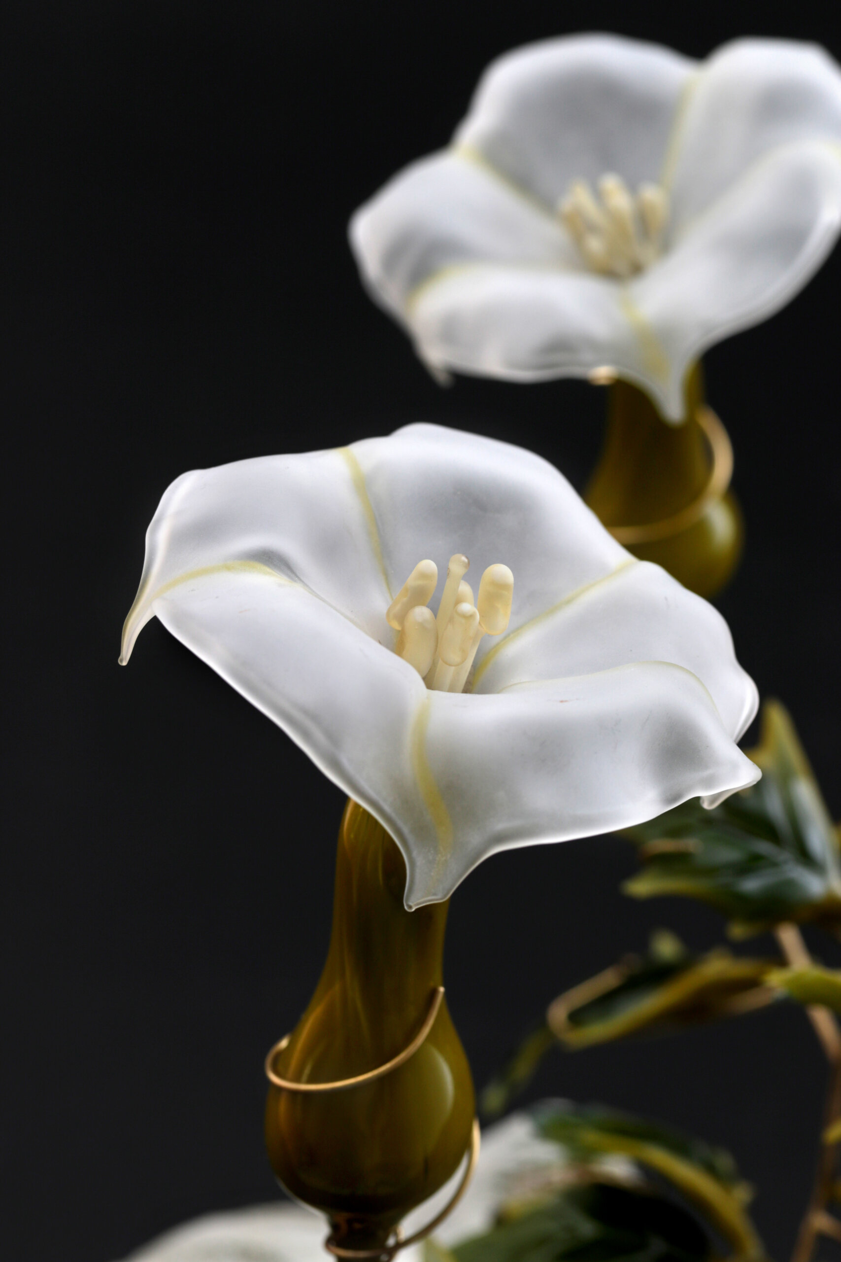 Le focus dédié aux « Arts verriers » est de retour avec un parcours révélant des œuvres issues des trois sites formant les Étoiles Terrestres – Musée Lalique de Wingen-sur-Moder, Site Verrier de Meisenthal et Musée du Cristal de Saint-Louis –, mais aussi de l’European Studio Glass Art Association et du Cerfav (Centre européen de recherches et formation aux arts verriers, Vannes-le-Châtel). Ce dernier expose ainsi les délicats travaux de huit de ses diplômés, dont L’Éternité Fragile, projet réalisé par Caroline Moal et illustrant son attrait pour les représentations de la faune et de la flore, immortalisées, par exemple, à travers d’incroyables fleurs de verre soufflées au chalumeau. Sa camarade Manon Fontaine présente, quant à elle, Biomorphose, série s’inspirant du phénomène biologique éponyme – où un parasite modifie la morphologie d’un organisme. Des formes captivantes se dessinent, donnant l’impression qu’un champignon cordyceps s’est emparé de son hôte et cherche à étendre ses filaments jusqu’au visage du visiteur. Du côté de la thématique de l’eau, elle est mise en avant avec les lauréats du concours Talents contemporains de la Fondation François Schneider. Parmi eux, on retrouve Manon Lanjouère et ses cyanotypes sur verre dénonçant les dangers de la pollution subaquatique, Les Particules, le conte humain d’une eau qui meurt, ainsi que la production hybride liant sérigraphie et peintures Zode IV : la mer, horizon des possibles d’Eva Nielsen et la sculpture évolutive Wishing Well II de Bianca Bondi. Invité à jeter des pièces en cuivre à l’intérieur d’un tabouret remodelé, le public verra effectivement le liquide présent les oxyder et changer de couleur.
