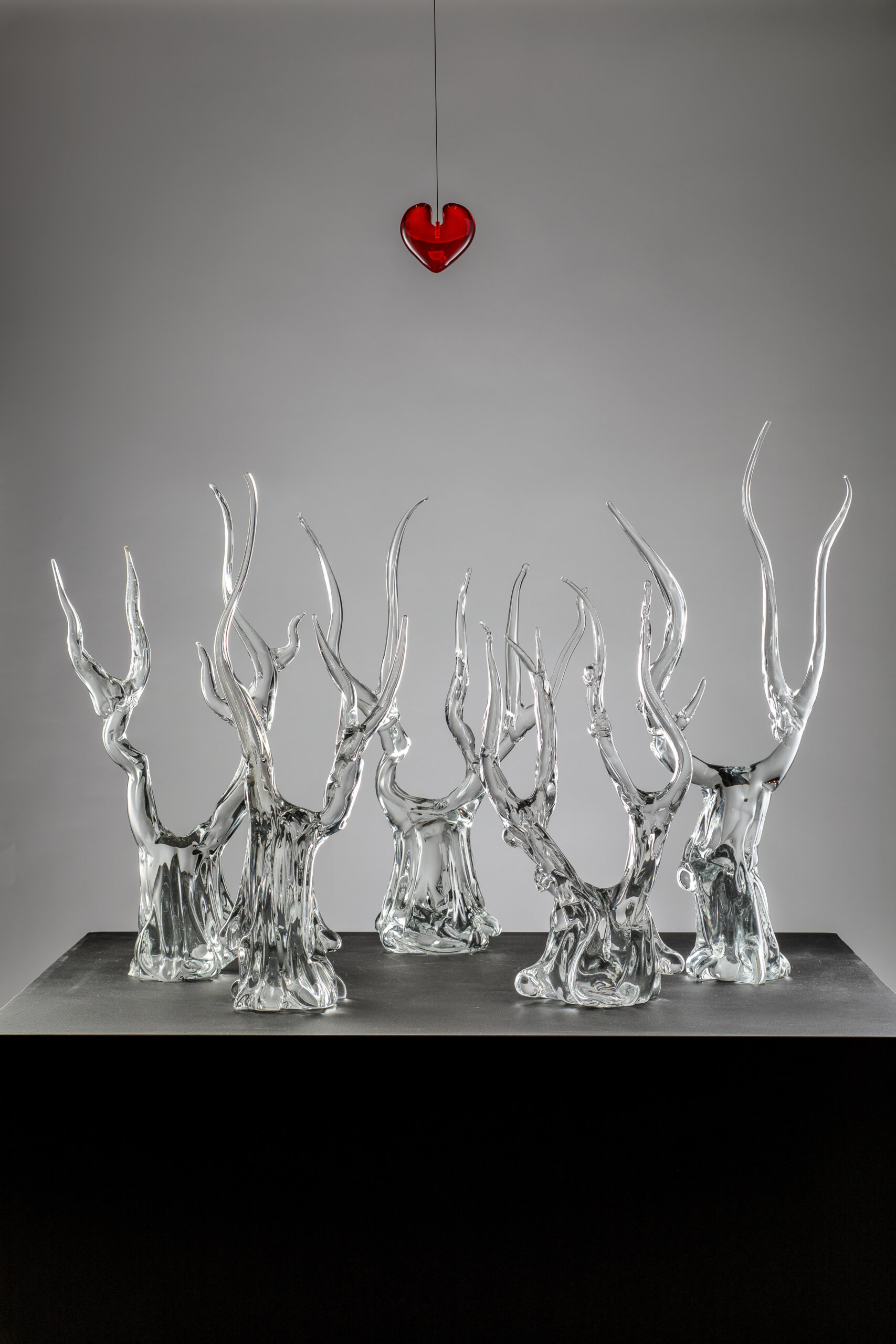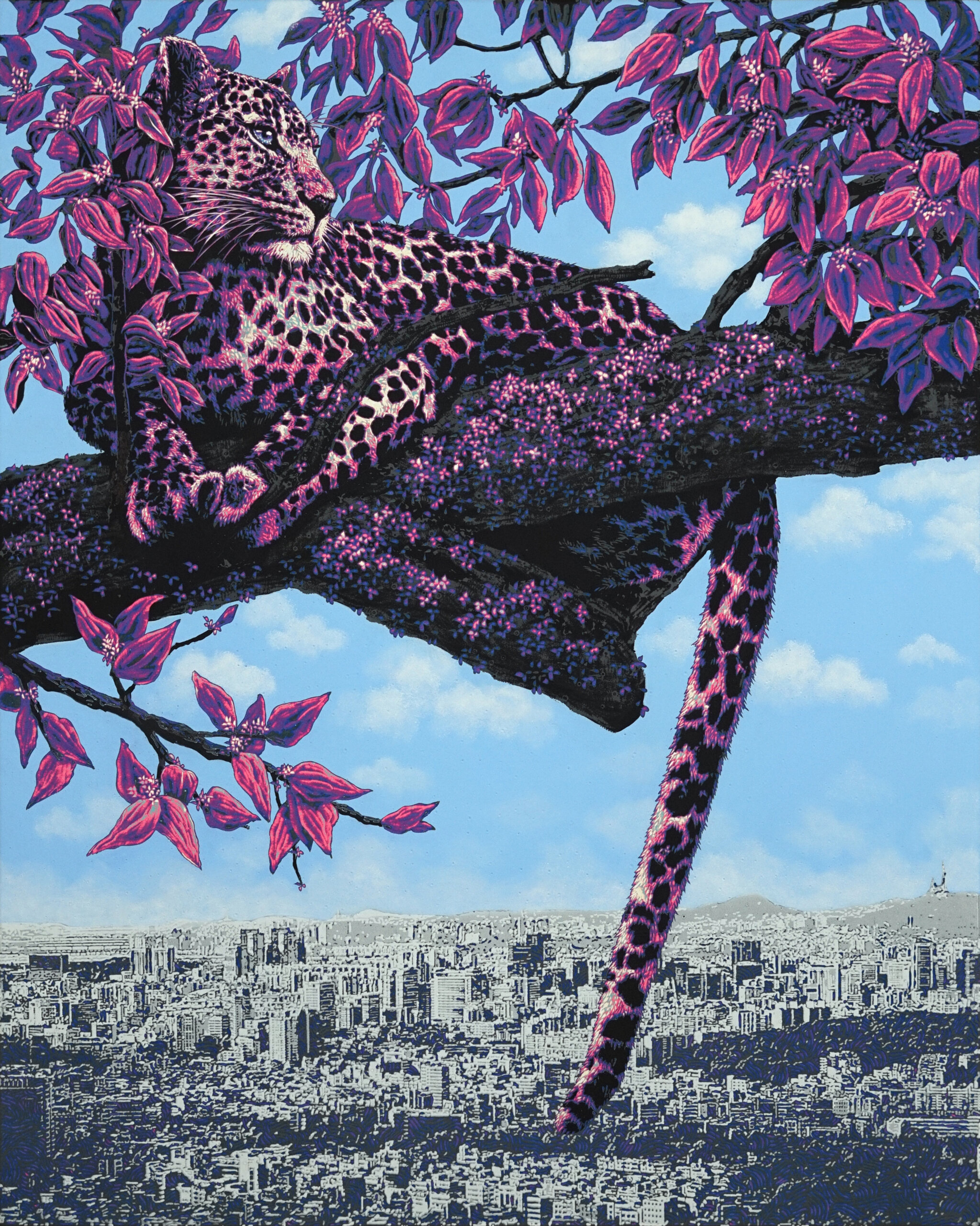 Dans le reste de la foire se déploient une soixantaine de galeries françaises et internationales avec, comme chaque année, son lot de nouvelles participantes. L’italienne Barovier&Toso ARTE (Murano), spécialisée dans les techniques verrières, montre Marija Jaensch et L’Offrande du Cœur, installation figurant cinq arbres translucides sans feuilles surplombés par un cœur rouge symbolique. Fascinante, l’œuvre est une réinterprétation de la tapisserie médiévale du même nom, confectionnée au tout début du XVe siècle et conservée aujourd’hui au Musée du Louvre. Venue tout droit de Séoul, la coréenne Aria Gallery se concentre pour sa part sur les dialogues entre nature, animaux et êtres humains. Parmi les trois peintres présentés, Park Ki Hoon met en scène, dans Coexistence, des animaux sauvages – jaguars, girafes, éléphants, loutres… – au beau milieu de mégalopoles, jouant sur les oppositions entre couleur, noir et blanc afin de créer un paysage ultra poétique.