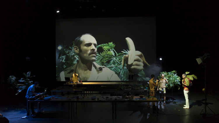 En tête de proue du focus catalan, Marcos Morau ouvre le bal en bousculant admirablement notre perception de l’humanité dans Pasionaria*. Le chorégraphe livre une dystopie futuriste où l’individualisme a supplanté toute émotion, donnant corps à un subjuguant ballet d’automates. À ce voyage futuristico-fantastique répond une autre performance catastrophiste. Le Kingdom de l’Agrupación Señor Serrano traverse les crises économiques avec un humour décapant faisant de King Kong le symbole d’un capitalisme fou. La bête velue ne jure que par la… banane. Le monde ainsi revisité veut toujours plus de fruit jaunes et courbes pour nourrir son monstre, quitte à saccager nature, échanges, libertés et autres désirs divergents sur son passage. Sur une table centrale toute en longueur, les comédiens manipulent tout un tas de maquettes et d’accessoires, donnant vie en se filmant en direct à des trucages aussi grossiers qu’hilarants de punks fêtant la mort d’un ancien monde. Bien entendu, toute référence au vrai monde n’est pas fortuite ! Ambiance #metoo assumée dans Rebota rebota y en tu cara explota (Ça rebondit ça rebondit et ça t’éclate en pleine face) où Agnés Mateus s’attaque aux violences faites aux femmes. Totalement excentrique dans le corps, la performance ne laisse aucune chance aux clichés enfermant les femmes dans des carcans de princesses ou d’idiotes. Sur un rythme soutenu, elle dénonce frontalement deux corolaires : la passivité et l’indifférence qui font que les comportements ne changent guère.