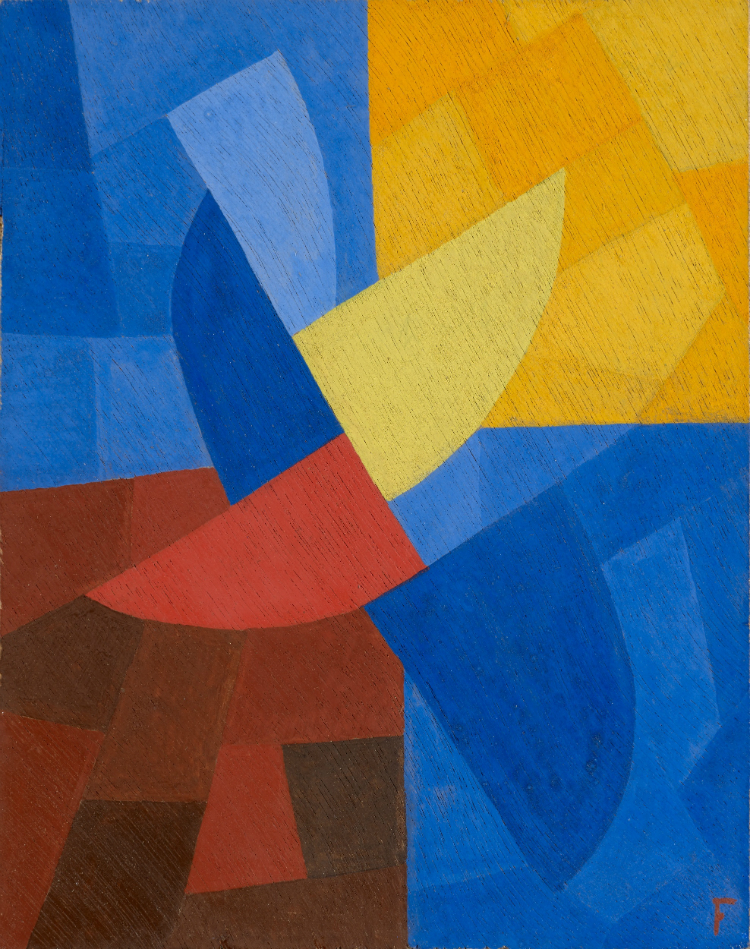 Tenant d’un communisme cosmique, Otto Freundlich réalise des compositions abstraites et méditatives comme Mon Ciel est rouge (1933), où éclate un champ vermillon, drapeau soviétique flottant au vent, dans un ordonnancement de cellules chromatiques bleues, grises, noires ou blanches évoquant un vitrail, une discipline où excella celui qui avait travaillé sur le chantier de la Cathédrale de Chartes en 1914. Face à elle, le visiteur se sent à la fois happé par un irrésistible mouvement d’essence politique et plongé dans un bain métaphysique apaisant. Souhaitant transcrire la conscience de l’univers dans ses œuvres, cet utopiste laisse des toiles irriguées par une tension entre rigueur de la construction et volonté de déconstruction pleine de couleurs vives rappelant Robert Delaunay dans leur orgie géométrique. Ses sculptures, comme la monumentale Ascension (1929), sont des agrégats de formes épaisses faisant penser à la complexion d’un corps humain irrémédiablement lié aux puissances chtoniennes. Installées au milieu des peintures, des vitraux ou des mosaïques aux teintes vives, elles sont leur pendant sombre, comme si la terre et le cosmos se rejoignaient dans une création baignée par une intense spiritualité.