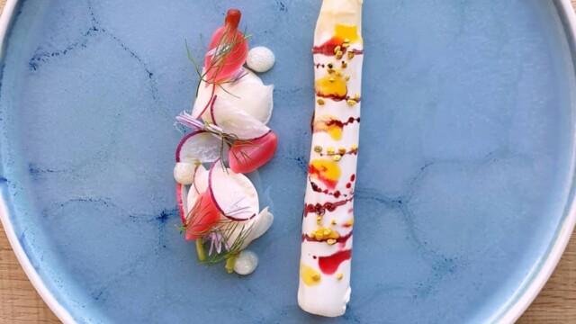 Cette éthique localiste n’empêche pas une ouverture sur le monde, avec la redécouverte des garums et autres fermentations ou l’utilisation des techniques comme l’ikéjimé, permettant de tuer le poisson en préservant ses qualités gustatives et organoleptiques. En témoigne un sandre terriblement aérien, revenant sur terre en douceur grâce à un jus d’arêtes à la verveine. Voilà hardi et habile jeu d’équilibres, qui voisine avec un cœur de courgette à croquer dans une composition au graphisme pétri de tendresse et d’élégance mêlées. Autre étonnement qui entre en résonance avec le précédent, une pomme de terre glacée au kombucha de myrtille barbote avec jubilation dans une sauce au munster fumé. Le jeu dialectique entre l’évanescence sucrée des baies et la prégnance lactico-terreuse du fromage est séductrice en diable, laissant un durable souvenir, tout comme un dessert d’une grande pureté où dialoguent abricots confits, yaourt et glace au miel de sapin. Tout cela est architecturé, cuisiné dans l’instant et fait forte impression : « J’essaie de viser la deuxième Étoile pour conserver la première », résume Loïc Villemin, qui devrait bientôt doubler la mise.