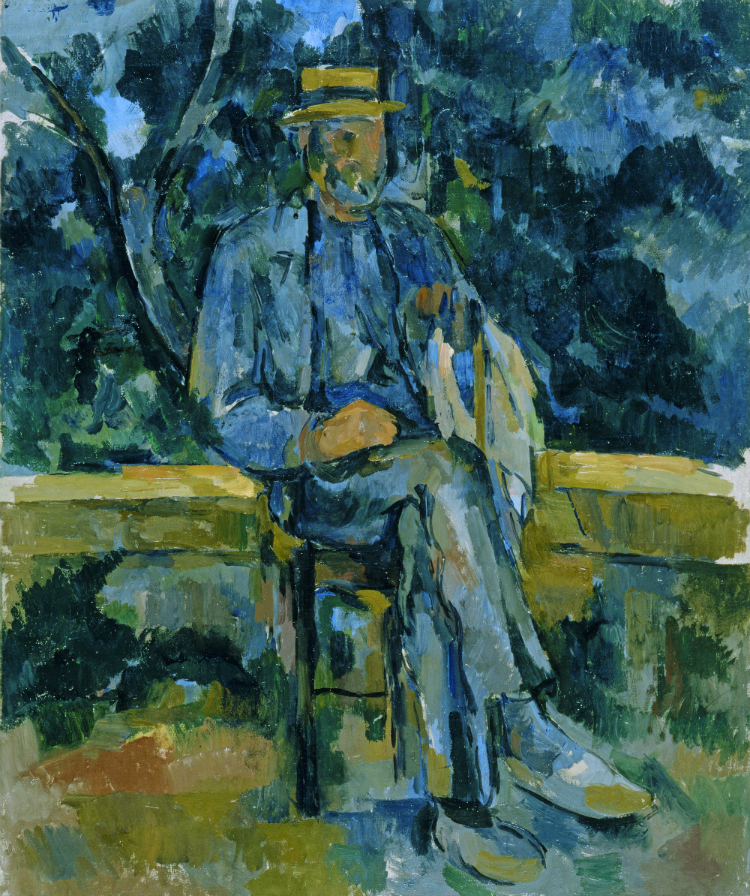 Enfin, ce sont les correspondances sensorielles qui sont mises au jour : le feuillage d’un arbre à l’aspect cristallin et liquide répondant à des cieux ou des eaux dotés d’une matérialité puissante (Le Pont de l’île Machefer à Saint-Maur-des-Fossés, 1895/98). Pour cela, Cézanne a délaissé ses couleurs épaisses et souvent sombres des débuts au profit d’une palette plus claire, s’attelant à réinventer les relations entre surface, formes et espaces. Sa touche se raccourcit et l’abstraction gagne ses (faussement) immobiles paysages où la géométrie des aplats de couleur éblouit. Ainsi en va-t-il aussi des nombreuses vues de la montagne Sainte-Victoire aux formes éclatées et au ciel dans lequel viennent se jeter des taches de nature, mais aussi des Baigneuses dont le rythme des contours et des teintes appelle déjà les révolutions picturales à venir. Son Portrait d’un paysan (1905/06) dont le visage nous échappe se confond, lui, quasiment avec le feuillage environnant. Et que dire des Rochers à l’Estaque (1882-85) comme des incroyables versions évolutives des Lauves (Le Jardin des Lauves) du début 1900 dont la flamboyance et la retenue dans la recherche de l’essentiel marquaient un temps d’avance inspirant pour ses pairs, notamment les plus jeunes.