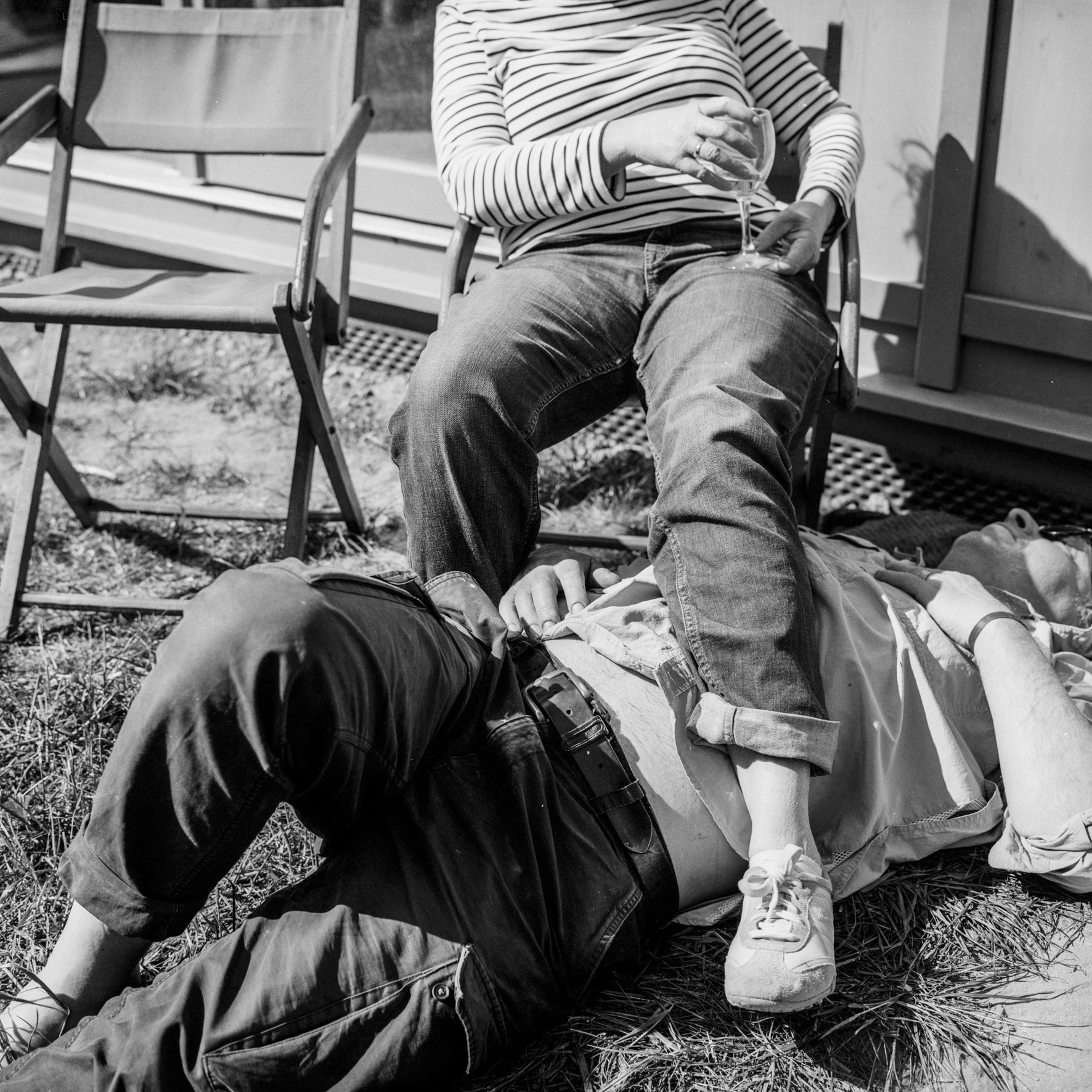Exposés par groupes thématiques à La Filature, les clichés sont dépourvus d’appareil lexical, même si un « coin lecture » a été installé, où les ouvrages sont en libre consultation. Se crée ainsi une narration différente de celle qui est à l’œuvre dans les livres, profondément poétique et pétrie d’humour. Pascal attrape des tranches de vie. Un homme et une femme saisis sur les draps froissés d’un lit anonyme, dans une quelconque chambre d’hôtel. Une dame âgée, mutine, qui fait le pitre, rappelant les mots de Louis-René des Forêts dans Ostinato : « Que jamais la voix de l’enfant en lui ne se taise, qu’elle tombe comme un don du ciel offrant aux mots desséchés l’éclat de son rire, le sel de ses larmes, sa toute-puissante sauvagerie. » Des adolescents figés dans un éternel printemps. La tristesse d’un couple qui se sépare se manifestant par de petits riens, glissements progressifs du désir vers le néant. Les souvenirs se ramassent à la pelle, concentrés dans la mélancolie d’un regard. C’est son existence. C’est la nôtre aussi, forcément. Le photographe n’est pas un adepte de « l’instant décisif » d’un Cartier-Bresson – qui consiste, en résumé, à capturer un mouvement au moment idéal. Il se rapproche plus de la vision d’un Robert Frank et, dans ses clichés, semble se cristalliser le bonheur, parfois zébré de douleur, d’être au monde.