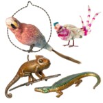 Mitten in der Industriellen Revolution sind diese Tiere die Avatare von jenen, die die mittelalterlichen Bestiarien bevölkerten und stellen berührende Zeugnisse einer Epoche dar, in der die Serienproduktion die Poesie nicht ausschloss: Ein schelmischer Kater, der ein Ei auszubrüten scheint, ein niedlicher Hase, der seine Karotte zwischen den Pfoten hält, eine silberne Schildkröte in Form eines wertvollen Schmuckstücks, ein nobler und würdevoller Elefant, ein elegant auf einem Ast sitzendes Chamäleon, oder auch ein schneeweißer Hund, der einen Korb im Maul hält… Man ist fasziniert von der ästhetischen Vielfalt dieser kleinen Tierchen!