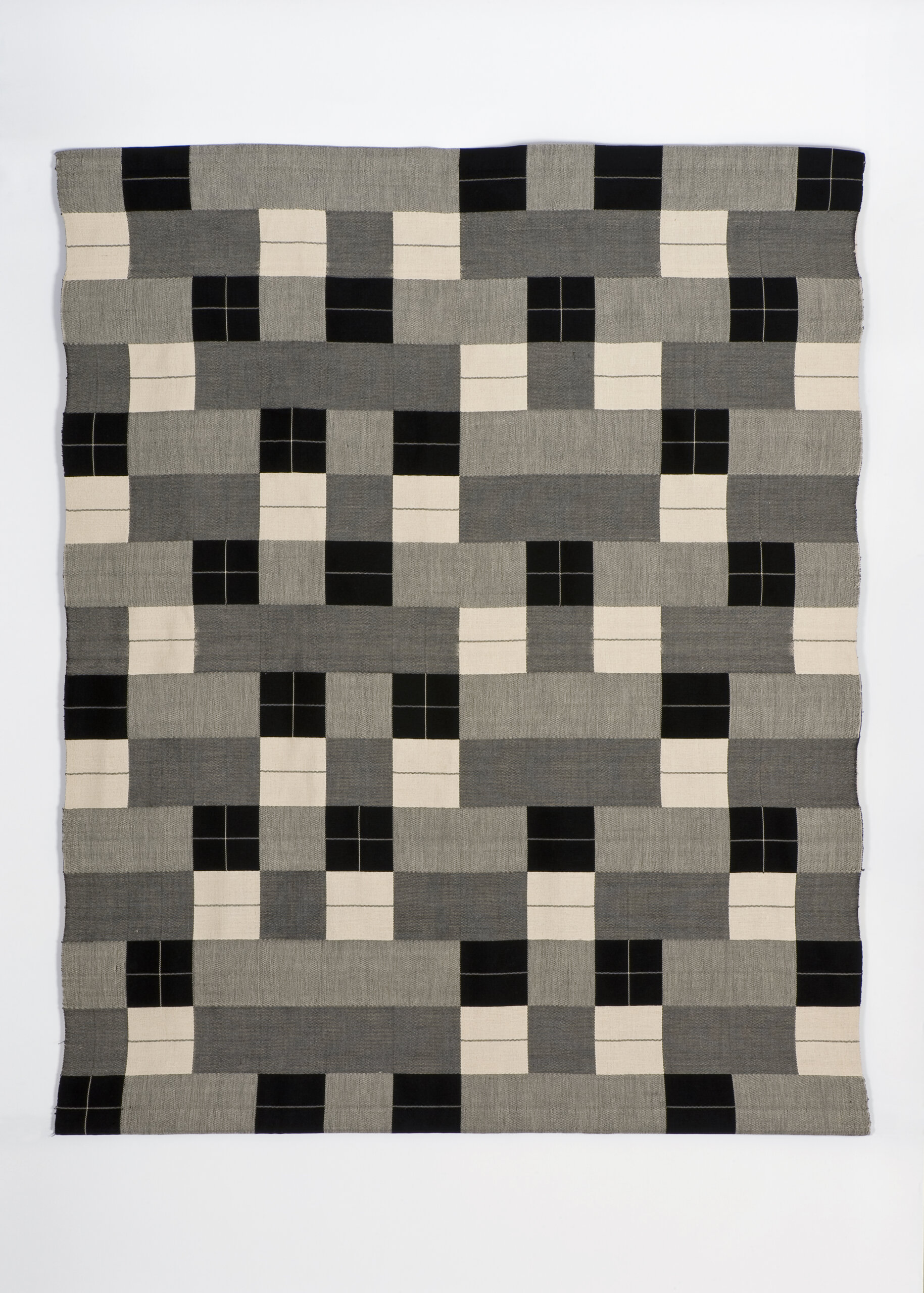 Als sich Anni Albers (1899-1994), die 1922 dem Bauhaus beitritt, in das Textilatelier begibt, ist das kein Herzenswunsch, sondern eine Notwendigkeit, denn die Frauen wurden hierzu sofort „eingeladen“. In Weimar, wo die Schule damals installiert ist, wird sie zutiefst von der Lehre von Paul Klee geprägt – der ihre gesamtes Leben lang einen großen Einfluss auf sie ausübt – und seiner Art und Weise Abstraktionen mit geometrischer Grundlage mit organischen, natürlichen Formen zu kombinieren und mit Farben zu spielen… selbst wenn sie sich für ihr Diplom einen braunen Wandbehang ausdenkt, der von großer ästhetischer Kargheit ist, dessen eine Seite Klänge schluckt und die Akustik verbessert, während die andere Licht reflektiert. Die Innovation bleibt eine Konstante im Laufe ihrer Karriere, mit der Verwendung von Zellophan, Drähten, etc. Später wird sie sagen: „Den praktischen Zweck aus dem Blick zu verlieren ist nicht unbedingt ein Verlust, denn ein Resultat, das nicht praktisch ist, kann sich in Kunst verwandeln.“ Weniger bekannt als ihr Mann Josef (1888-1976), mit dem sie eines der großen Paare des 20. Jahrhunderts bildet – dem das Musée d’Art Moderne de la Ville de Paris im Jahr 2021 eine essentielle Präsentation widmete – wird Anni seit einigen Jahren wiederentdeckt und diese Ausstellung stellt einen großen Schritt dieses Prozesses dar.