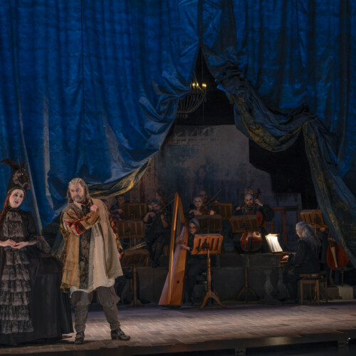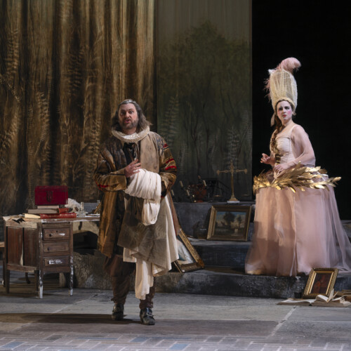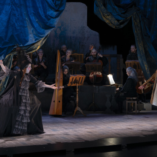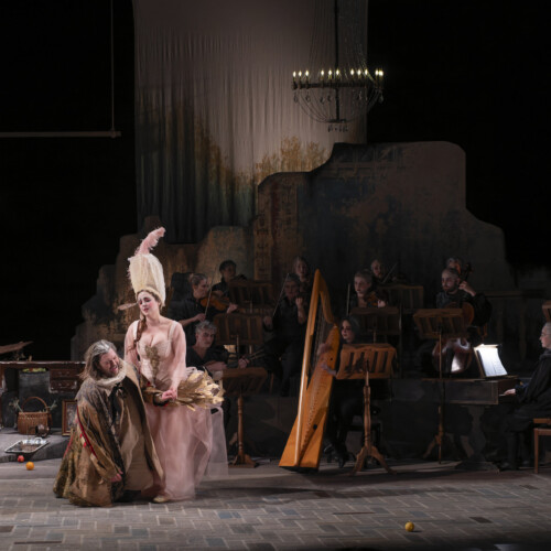 Das Intermezzo von 1720, das vom berühmten Stück von Molière inspiriert war, Il vecchio avaro, war eine komische Atempause zwischen zwei Akten einer Opera Seria, um diese mythologisch-tragischen Angelegenheiten ein wenig aufzulockern. Hier stellt sich der sehr vergessene – und auch sehr produktive – Francesco Gasparini (1661-1727), eine wunderbare burleske Skizze vor, in Form einer Neuinterpretation der Originalgeschichte aus dem Blickwinkel von Fiametta (einer jungen bescheidenen Frau, die von der genialen Eva Zaïcik verkörpert wird), die ihren Nachbarn bestrafen will, den alten Pfennigfuchser Pancrazio (der brillante Baryton Victor Sicard).