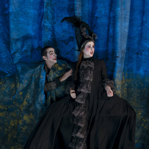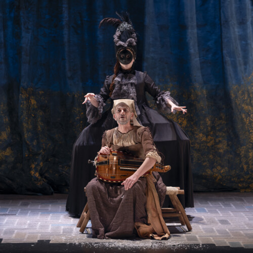 Um ihm sein Gold zu stehlen, das in einer Kassette im Garten vergraben ist, denkt sie sich einen komplexen Plan aus, in dem Verkleidung auf falsche Hochzeiten trifft. In seiner Inszenierung versetzt sich Théophile Gasselin in den Geist der Commedia dell’arte, der das Werk durchzieht, was einem burlesken Epos, der manchmal von düsteren Momenten geprägt ist, einen ganz schönen Rhythmus verleiht, zwischen Gemälden und Kostümen, die ihre Epoche hinterfragen und einem Durcheinander unterschiedlichster Objekte.