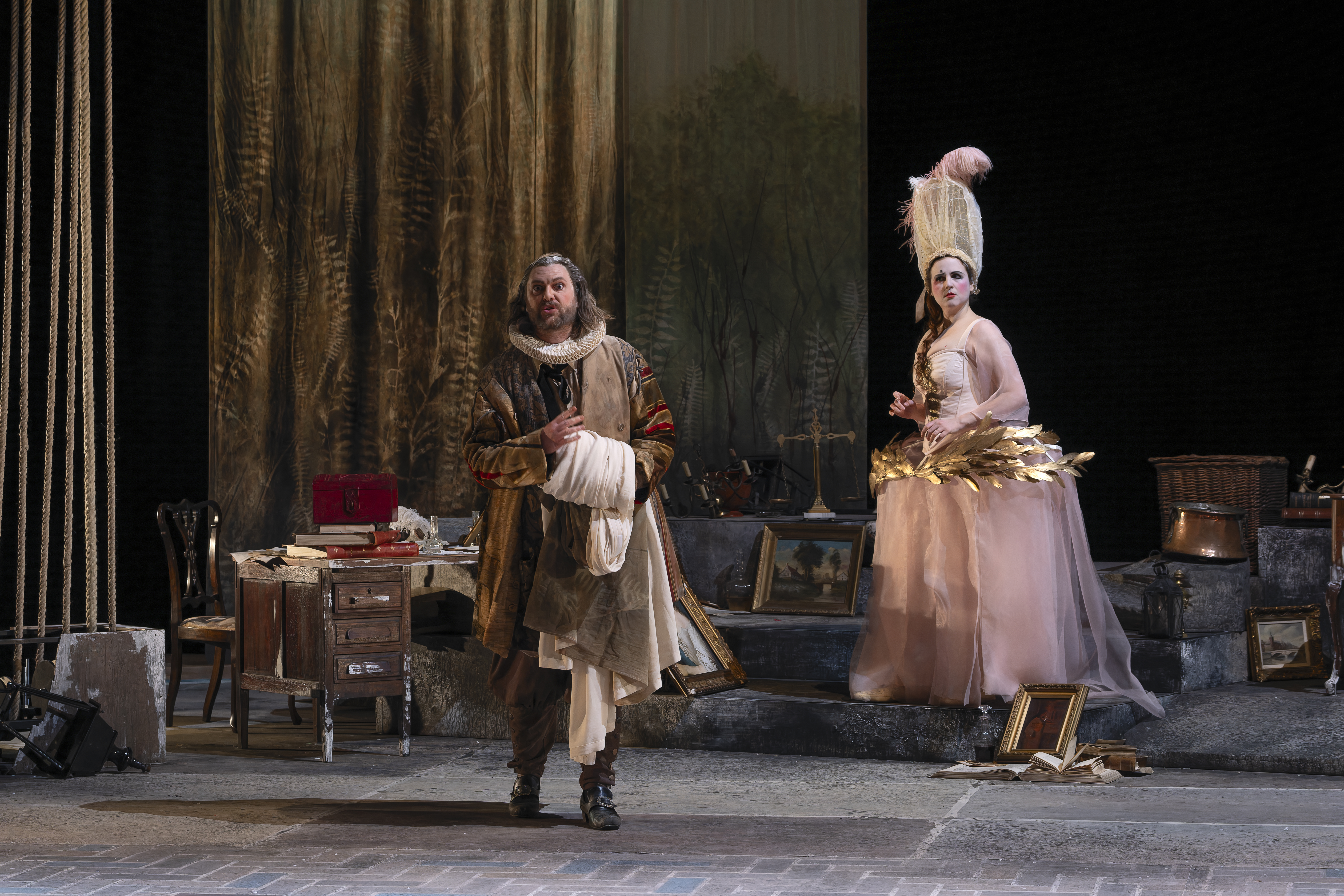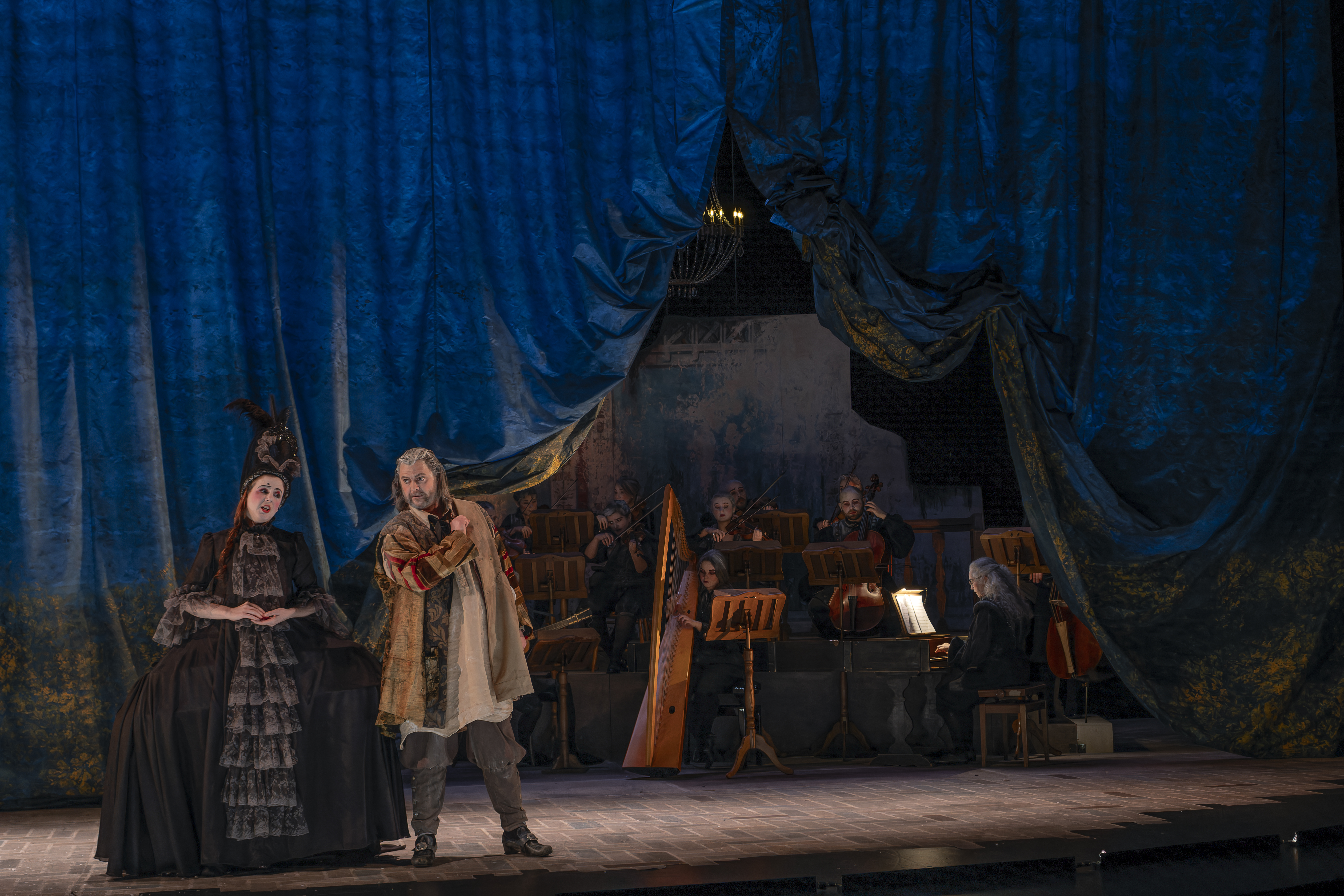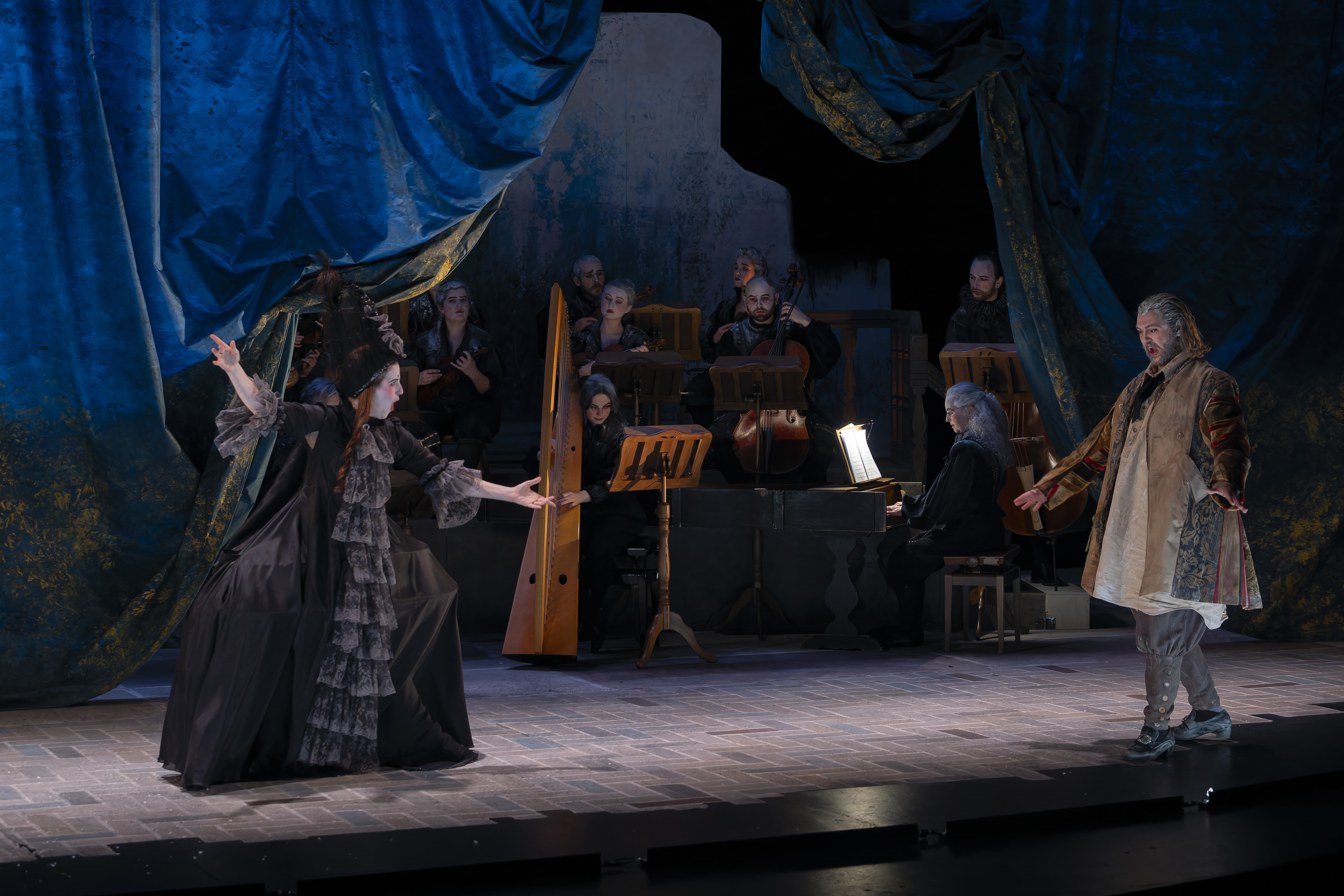 Das Intermezzo von 1720, das vom berühmten Stück von Molière inspiriert war, Il vecchio avaro, war eine komische Atempause zwischen zwei Akten einer Opera Seria, um diese mythologisch-tragischen Angelegenheiten ein wenig aufzulockern. Hier stellt sich der sehr vergessene – und auch sehr produktive – Francesco Gasparini (1661-1727), eine wunderbare burleske Skizze vor, in Form einer Neuinterpretation der Originalgeschichte aus dem Blickwinkel von Fiametta (einer jungen bescheidenen Frau, die von der genialen Eva Zaïcik verkörpert wird), die ihren Nachbarn bestrafen will, den alten Pfennigfuchser Pancrazio (der brillante Baryton Victor Sicard).