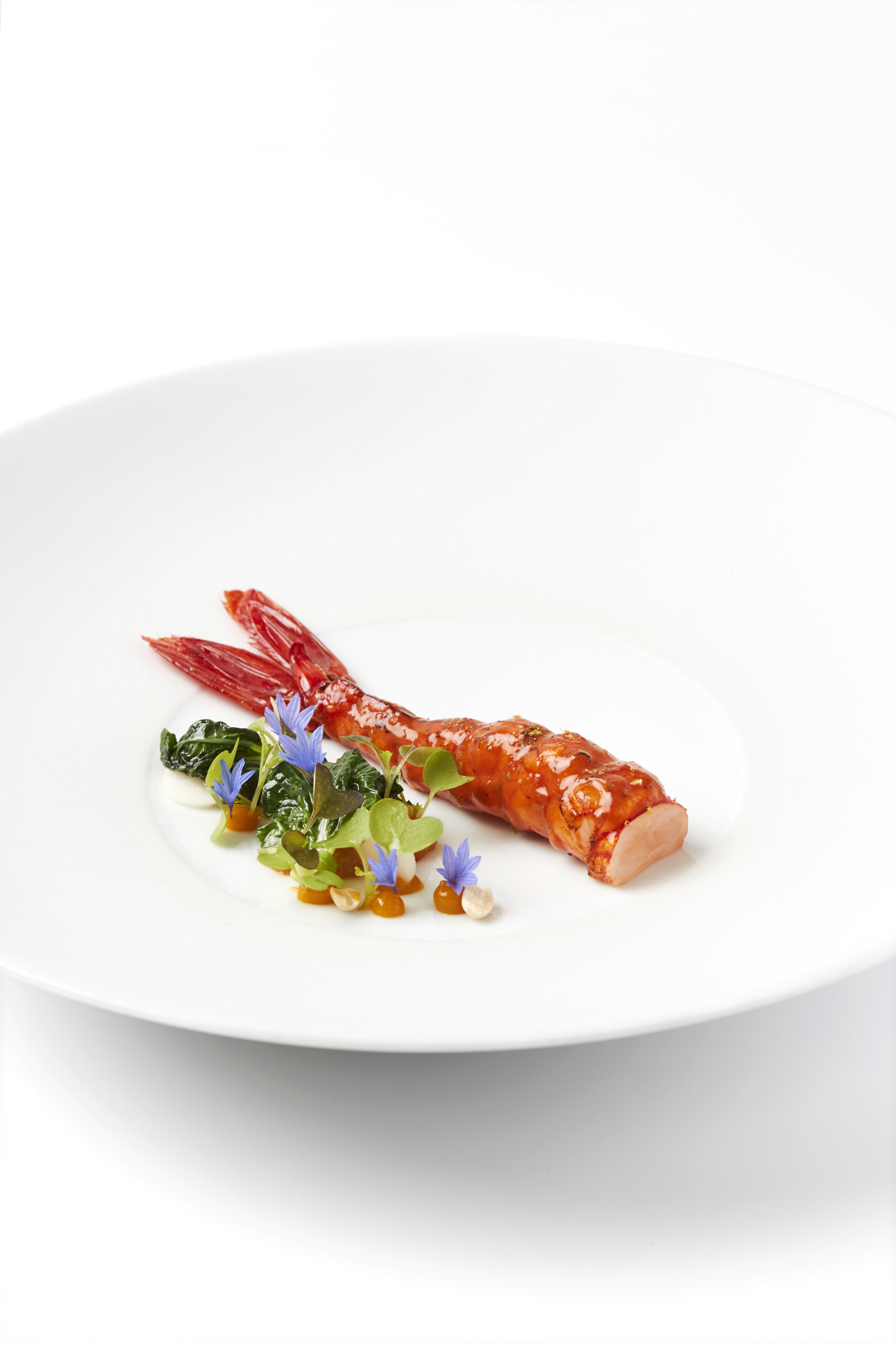 Im Februar ist Jonas Zörner im Lorenz Adlon Esszimmer als Nachfolger von Rego Brändli, angekommen, wobei er den legendären deutschen Palast mit einer ausgeklügelten Küche erhellte, deren Grundlagen – ein Klassizismus à la française – in einen Dialog mit den lebhaften Impulsen einer kosmopolitischen Stadt tritt. Als echter Berliner ist der zweiunddreißigjährige Küchenchef schon ganz jung zur Gastronomie gekommen: „Mit elf Jahren schrieb ich Rezepte und machte vielerlei Experimente“, sagt er lachend. Nach großen Adressen in der Hauptstadt – wie Vau unter der Leitung von Kolja Kleeberg, oder Golvet – macht er seine prägendste Erfahrung in der Schweiz, bei Heiko Nieder in The Restaurant (zwei Sterne im Guide Michelin, im Dolder Grand in Zürich), „eine Schule des absolut hohen Anspruchs, die meine Teller beeinflusst hat, auf denen, so hoffe ich, jedes Element Sinn macht.“