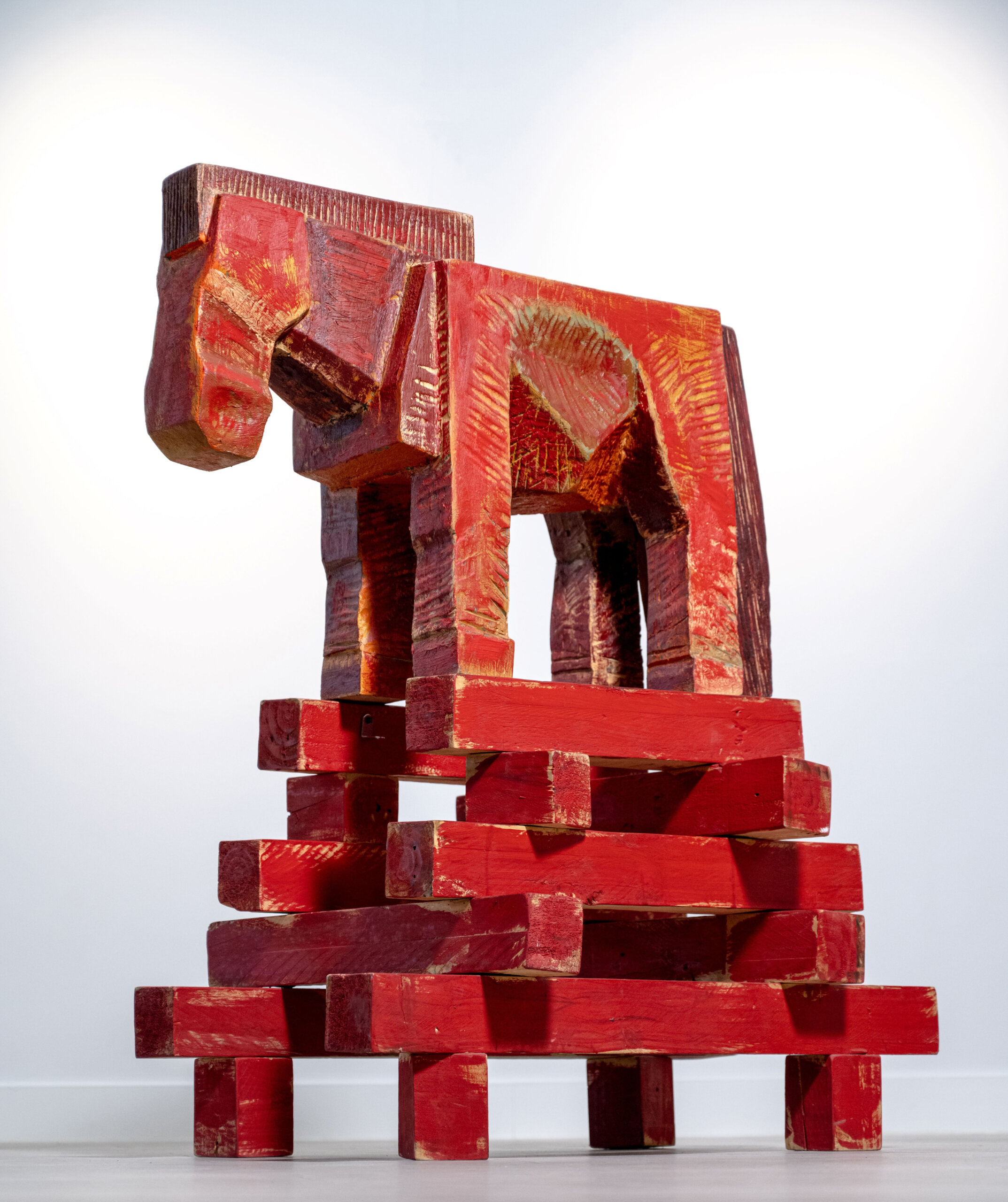 Unermesslich weite Steppen, die von Jurten gesprenkelt sind, in denen die Wildpferde frei herumtollen? Das ist das Klischee, das an der Mongolei – einer geographischen Zone, deren Grenzen im Laufe von Zeit und Raum variieren – haftet, ein Erbe einer eurozentrischen Vision der Geschichte. Während sie natürlich zu Teilen zutrifft, nuanciert diese reichhaltige Ausstellung mit mehr als zweihundert Objekten diese Sicht erheblich. Anhand eines vierteiligen Rundgangs erzählt sie die Geschichte des Landes anhand seiner Städte, was zeigt, dass sich nomadenhaftes und urbanes Leben keineswegs ausschließen. Sie stellt ebenfalls einen Dialog zwischen zeitgenössischen Werken mit Ausstellungsstücken aus der fernen Vergangenheit her: Die Pferdeskulpturen von Erdenebaya Monkhor wie Stupa (2014) die auf kuriose Weise an Stephan Balkenhol erinnern, illustrieren, zum Beispiel, die schwierige Anpassung der Tradition an die heutige Gesellschaft. Im ersten Teil taucht der Besucher in die Modernität von Ulaanbaatar ein, der pulsierenden Megalopolis des 21. Jahrhunderts, in der die Hälfte der Bevölkerung des Landes wohnt. Man bleibt sprachlos stehen vor Supermarkt (2014), einem riesigen hyperrealistischen Gemälde von Lkhagvadorj Enkhbat, auf dem das Bild dreier Obdachloser, in Grautönen, das in der Luft zu schweben scheint, auf die düstere Seite des wirtschaftlichen Wachstums und des vereinheitlichenden Kapitalismus aufmerksam macht.
