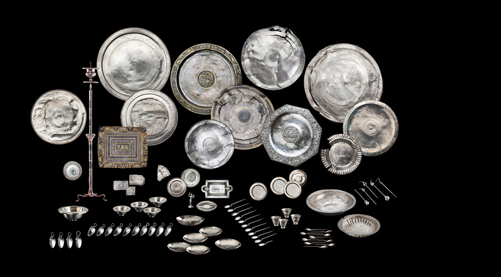 Oft rätselhaft und immer begeisternd: Das sind die 25 Geschichten von Schätzen, die hier erzählt werden. In einer riesigen Vitrine werden zum Beispiel 270 Objekte aus Silber ausgestellt, für eine Gesamtmasse von 58 Kilo. Reich verzierte Teller und andere Goldschmiedearbeiten – wie die „Achillesplatte“, die elf Szenen aus der Jugend des Helden zeigt – aber auch Geldmünzen, die einen außergewöhnlichen römischen Korpus darstellen, der wahrscheinlich um 350 nach Christus vergraben wurde um ihn zu schützen, in einer Zeit der politischen Unsicherheiten und der wiederholten Attacken durch Alamannen, die das Reich bedrohen. Er wurde Ende 1961 in Kaiseraugst ausgegraben, als ein Baggerfahrer eine Metallplatte zutage bringt, die er für ein… altes Rasierschaumbecken hält. Das Ensemble bleibt an der frischen Luft, wird von Schnee bedeckt, dann findet ein Schüler das „Ariadnetablett“ dessen Zentrum sie mit ihrem Ehemann Dionysos und einem Panther zeigt. Erst rund zwei Monate später beginnen Archäologen ernsthafte Ausgrabungen und sammeln Objekte ein, die von Anwohnern mit nachhause genommen wurden… selbst wenn es sicher ist, dass bis heute Teile fehlen. Die Ausstellung ist voller Anekdoten dieses Typs, die es der Phantasie erlauben spazieren zu gehen, verführt von einem gleichzeitig wissenschaftlichen, didaktischen und verspielten Sprung in die Geschichte.