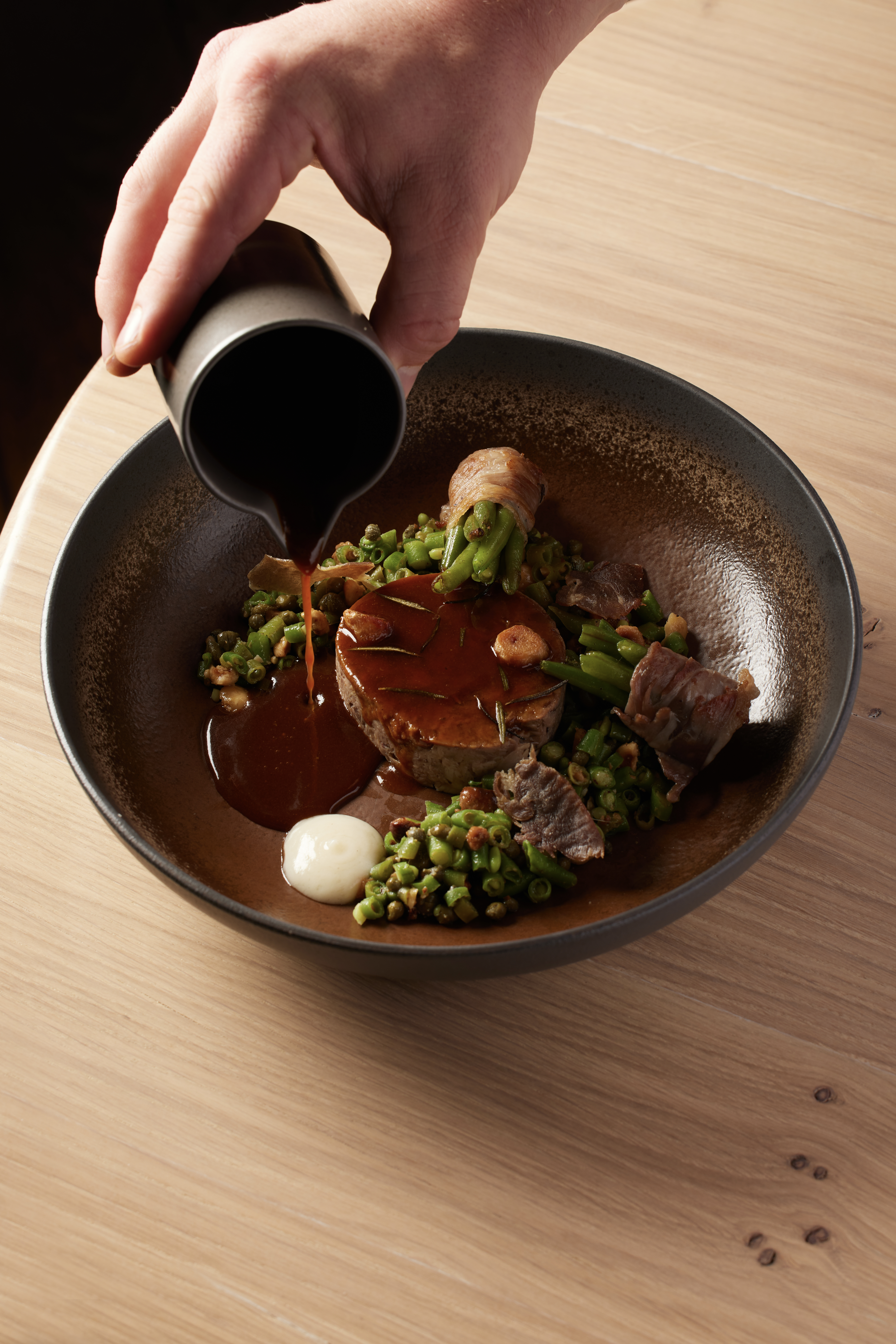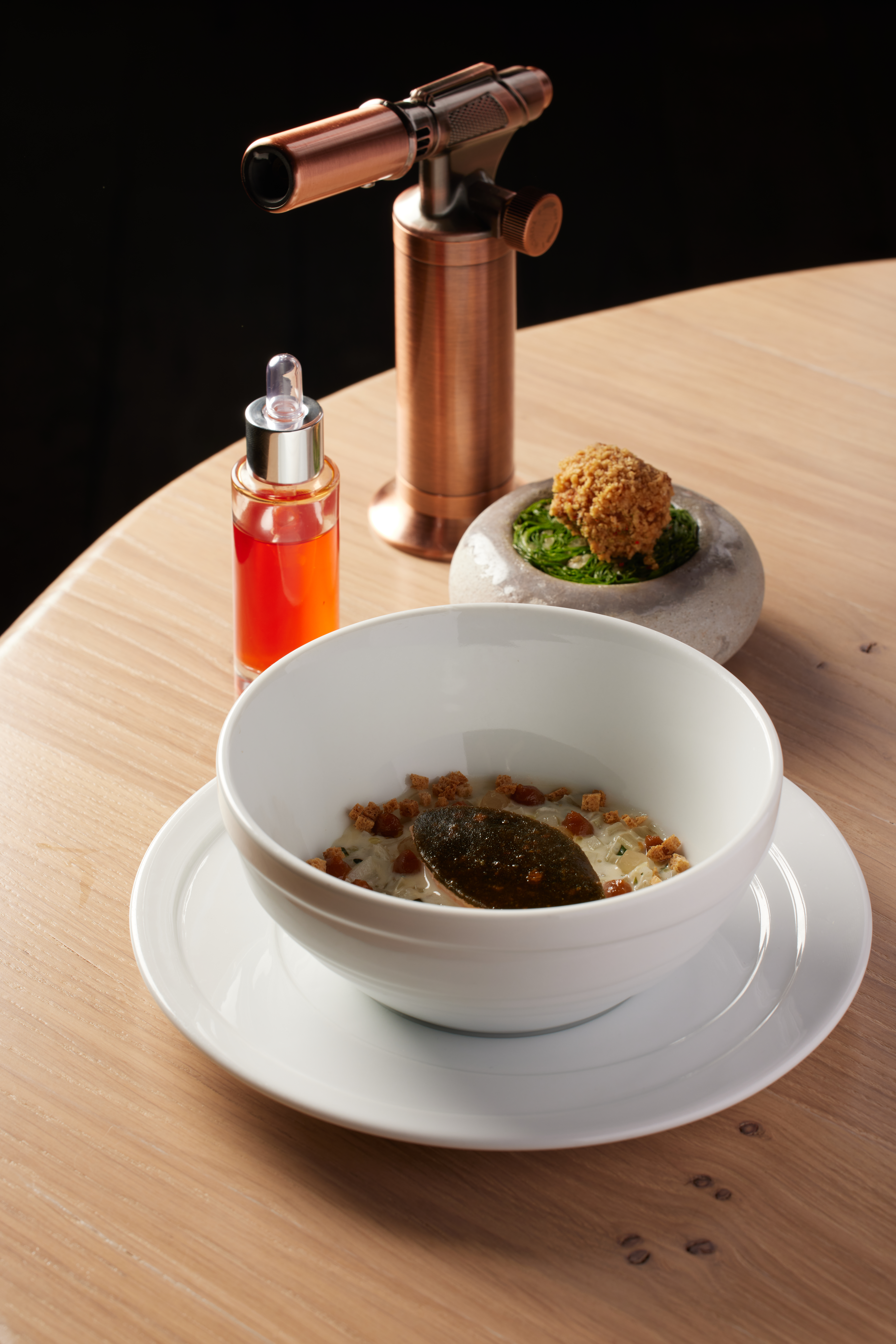 Die Ankunft von Jean-Paul Acker in La Cheneaudière im Frühjahr 2021? „Eine Rückkehr zu den Ursprüngen“, sagt der junge elsässische Küchenchef lächelnd, der hier einige Jahr ab dem Alter von 18 Jahren ausgebildet wurde, unter der Leitung von Roger Bouhassoun und Daniel Stein. Nach einem Ausflug in den Süden in die „Galaxie Charial“, im Prieuré de Villeneuve-lès-Avignon, und (vorallem) im L’Oustau de Baumanière des Baux-de-Provence – wo er an der Seite von Glenn Viel ist, als er im Jahr 2020 den Gral der drei Sterne im Guide Michelin erreicht – hat sich die Wahl eines Comebacks in einem familiären Haus des Bruche-Tals als auf der Hand liegend erwiesen. In einem Etablissement, dessen guter Ruf allseits bekannt ist (insbesondere für seinen Spa), wurde das Gastronomie-Restaurant von Grund auf renoviert. Schnell in Le Feuillage („Das Laub“) umbenannt, eine logische Bezeichnung für ein bewaldetes Schmuckkästchen mit Hang zur Kunst – mit seinen Vitrinen mit getrockneten Pflanzen, die kurioserweise an einige Gemälde von Anselm Kiefer erinnern – verführt es, im Herzen des Waldes gelegen, den man in wunderschönen Ausblicken wahrnimmt.
