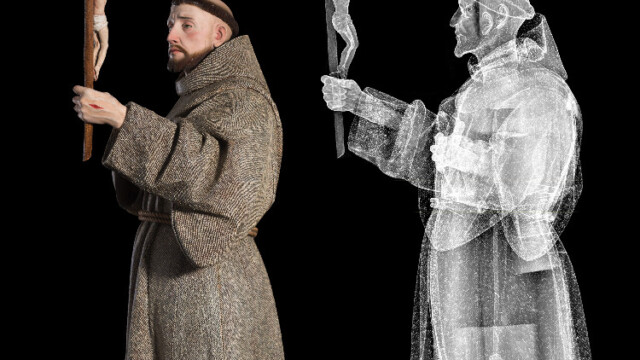 Die Ausstellung dringt buchstäblich in das Innerste der Werke des Bildhauers vor, anhand einer Serie von Röntgenaufnahmen, die in einer Kooperation mit dem Service für bildgebende Verfahren des Centre Hospitalier du Nord in Ettelbrück entstanden sind. Diese Initiative erlaubt es, die Verbindungstechniken und den materiellen Aspekt zutage zu bringen. Die verschiedenen Teile eines komplexen Puzzles offenbaren sich und tragen dazu bei, ihre Aura zu entmystifizieren. Kopf, Arme und zusammengefügte Hände oder Augen auf der einen Seite. Nägel, Stifte und Haken auf der anderen. So enthüllt die Figur des Heiligen Franz von Assisi ihre Kunstgriffe. Die Bilder zeigen den Sinn für Details bis hin in die Stoffe, die der Heilige trägt, die einen rauen und ausgefransten Eindruck machen. Pedro de Mena schnitzt Maschen ins Holz, die der Kleidung ihren lebendigen und dreidimensionalen Effekt verleihen. Die auf den Photographien sichtbaren Einschläge zeugen von einer extrem detaillierten Arbeit. Um die Aufmerksamkeit auf die Komplexität der Barock-Skulpturen zu lenken, empfängt ein Saal mit einer didaktischen Einleitung den Besucher. Der Restaurierungs-Service des MNHA hat Videos aufgenommen, die die Geheimnisse der Herstellung nachempfinden, welche den Werken ihren hyperrealistischen Aspekt verleihen. Kragen aus Hasenhaut, Grundierung und blaues Pigment für ihren Mantel, die Aufmachung der Mater Dolorosa lädt auf zweierlei Weise zur Betrachtung ein: jene des Mitgefühls und jene der Technik.