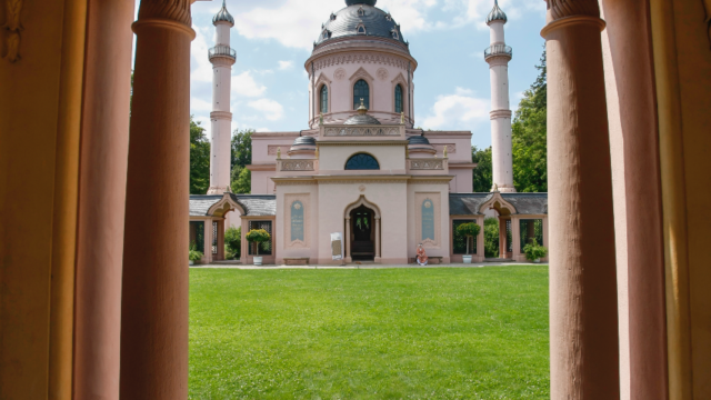 Mais le plus spectaculaire est un édifice unique au monde, construit par Nicolas de Pigage entre 1779 et 1795. Avec ses deux minarets et sa coupole, cette “mosquée rose” – reprenant la couleur préférée du monarque, celle des fleurs du pêcher – témoigne d’une époque où le style orientaliste turc était à la mode. Avec ses murs décorés d’aphorismes arabes et allemands, l’endroit était voulu par le souverain, qui se considérait comme cosmopolite et tolérant, pour inciter ses nobles invités à la réflexion. Impossible de ne pas penser ici à la parabole de l’anneau contenue dans la pièce Nathan le sage de Lessing (1779), une des pierres fondatrices des Lumières montrant que Dieu aime autant ses trois fils, les trois religions monothéistes qui pourtant se combattent, pensant chacune détenir la Vérité. Voilà réflexion bienvenue aujourd’hui…