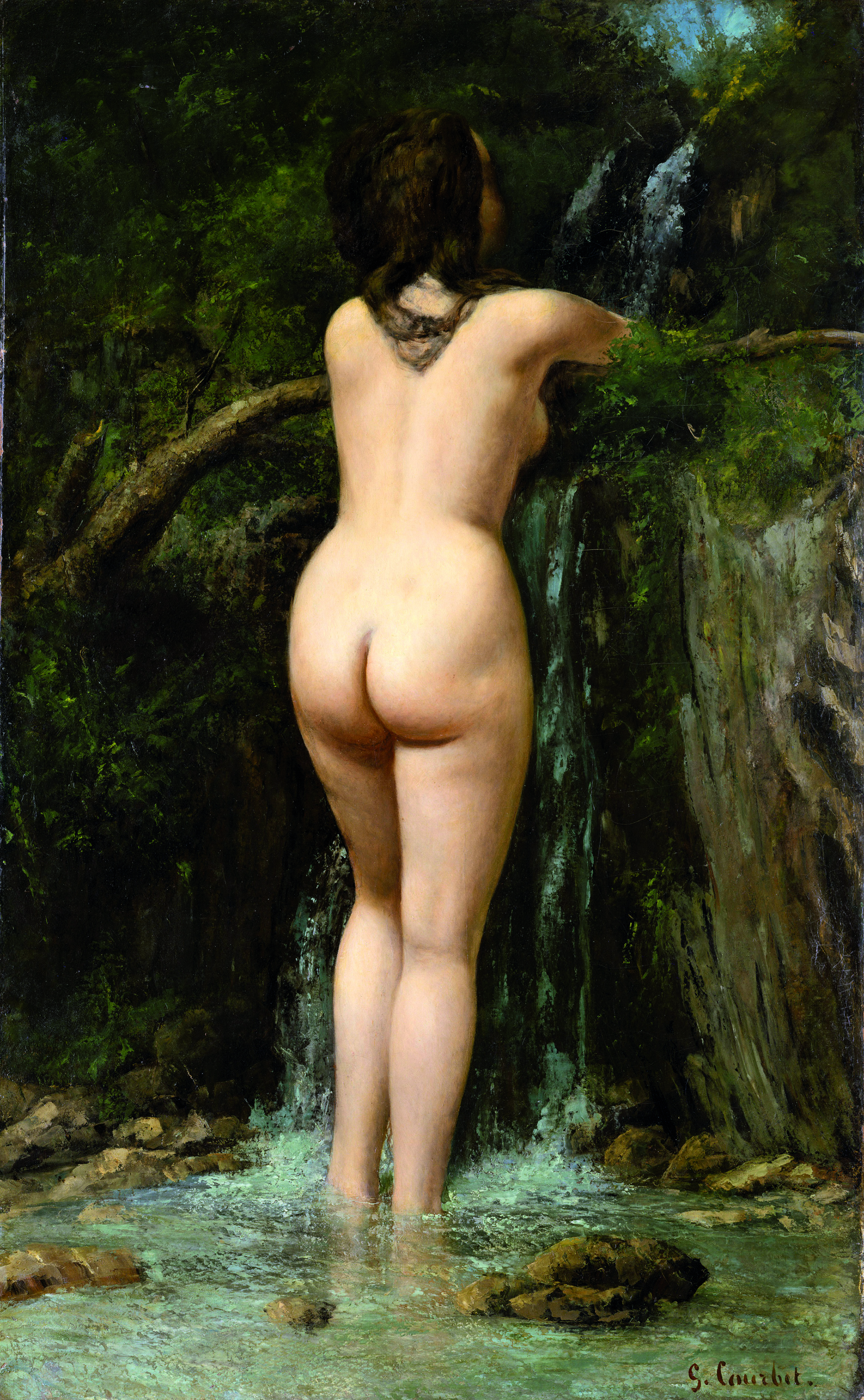 Organisée thématiquement (Le Corps érotisé, Les Représentations de la nature : entre idéal et réalité, etc.), l’exposition est une promenade dans la peinture française du XIXe siècle, Acclamée & Brocardée – pour reprendre son sous-titre – où se déploie notamment l’orientalisme de Delacroix (sa Chasse aux lions inspirée de Rubens). Il éclaboussa de son talent le Salon de 1822 avec La Barque de Dante, faisant voler en éclats les canons d’un néo-classicisme rigide incarné par Ingres dont le Kunsthaus présente le hiératique portrait d’un officier de l’armée de Bonaparte, Hippolyte-François Devillers. Dans ce tableau proche de la perfection, à la surface impeccablement lisse, se manifeste sa passion pour les détails (notamment vestimentaires) et les influences de la Renaissance italienne. Gustave Courbet s’oppose, lui aussi, à Ingres dans La Source reprenant le titre et le sujet d’une de ses toiles : alors que ce dernier a classiquement représenté une jeune femme nue de face, devant une cascade, il choisit de la placer de dos dans une composition réaliste au doux érotisme. Au fil des salles, on croise aussi Manet (Les Hirondelles refusé au Salon de 1874), Pissarro (dans Bords de l’Oise près de Pontoise, paysage impressionniste où émergent des cheminées d’usine dans le calme de la campagne), Moreau (Diomède dévoré par ses chevaux au romantisme maniériste nourri de Vinci, Michel-Ange et Piranèse) ou encore Monet avec le très sensible Sur la plage à Trouville représentant avec douceur le premier amour du peintre, Camille Doncieux.