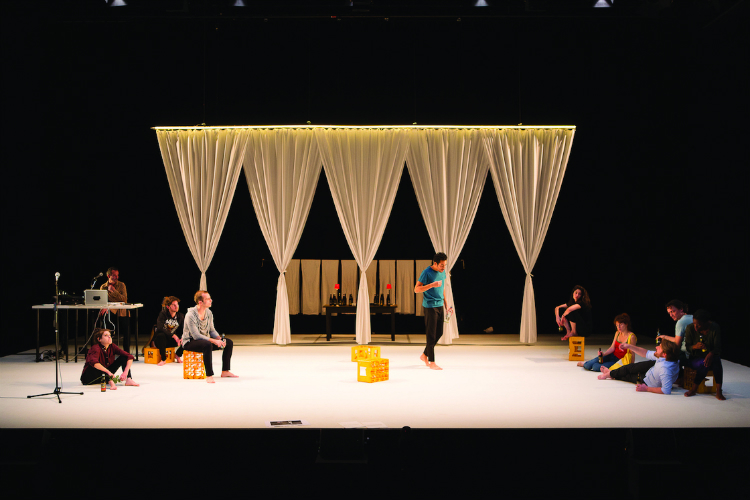 Le 20 juillet 1969, Eddy Merckx remporte son premier Tour de France et Neil Armstrong fait son premier pas sur la Lune. Deux événements qui racontent une époque, celle d’après Mai 68. Qu’en reste-t-il aujourd’hui ? C’est la question que pose la pièce chorale tissée par Jean-Marie Piemme. « J’aime que le théâtre mélange les niveaux d’expression », explique le dramaturge belge, « qu’il soit à la fois simple et complexe, qu’il allie le minuscule et le majuscule, l’histoire singulière des gens et la grande Histoire, le haut et le bas, la joie et la peine, l’humour et le dramatique, la parole quotidienne et la pensée philosophique. La pièce entière est faite de ces contrastes. » L’œuvre étonne par sa structure : seuls les trois rôles principaux sont attribués, comme un assemblage de courtes séquences hautement cinématographiques qui parlent de la société d’hier pour raconter la vie aujourd’hui. « Cette pièce de groupe est écrite pour un nombre indéterminé de comédiens. Seul le projet de mise en scène peut déterminer le nombre de personnes présentes sur le plateau. Les grandes lignes sont fixées, mais chaque acteur a une capacité de “respiration personnelle” qui donne de la souplesse au jeu. » Ainsi, dans la version d’Armel Roussel, onze à discuter d’amour, de beauté, de rêve, d’illusion, de résignation. À faire des sauts dans le temps de manière anarchique. « J’ai voulu rester au plus près de ce qui se passe dans un acte de mémoire. La mémoire est désordonnée, elle n’avance pas en ligne droite. »