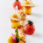 Que l’on s’attable dans les coulisses – à la fameuse table scénarisée par les auteurs de bande dessinée François Schuiten et Claude Renard – ou sous les verrières néo-Art nouveau – ou post-Horta si l’on préfère – d’une élégance raffinée, l’expérience demeure exceptionnelle aux côtés d’une brigade virevoltant en toute décontraction avec son sommelier aux conseils avisés. Pas étonnant lorsqu’on apprend que la maison a fait réaliser une cuvée spéciale à son nom par le mythique domaine alsacien Albert Mann. Et Lionel Rigolet d’expliquer le subtil équilibre de la carte « entre grands classiques, comme la mousse de jambon d’Ardenne ou les filets de sole, (avec leur mousseline au riesling et des crevettes grises), et créations à l’image d’un soufflé au citron vert et granité au parfum de mojito » en train de devenir iconique. Un moment passé au Comme Chez Soi demeure un instant suspendu, n’en déplaise à un Bibendum qu’on aime bien en général, mais qui, parfois, perd le sens commun. On craque ainsi pour la noble simplicité des coquilles Saint-Jacques de Dieppe, à la parfaite cuisson, farcies d’une mousseline de saumon et d’épinards, mignonnets beignets relevés d’une pointe d’ail, acidulés de quelques baies d’argousier. Tout aussi frais et joyeux est le gambero rosso – sans doute la meilleure crevette de la planète – dominant une composition où se lovent ensemble eryngii laqué (une délicieuse pleurote) et mélimélo de choux au poivre de Tasmanie barbotant dans un bouillon au parfum de coriandre et basilic thaï d’une infinie délicatesse. Maîtrise et inspiration sont aussi de mise sur le versant sucré de l’affaire, avec un éblouissant crémeux au chocolat porté par une dacquoise au café d’une extrême douceur… qui manque tellement ces temps-ci.