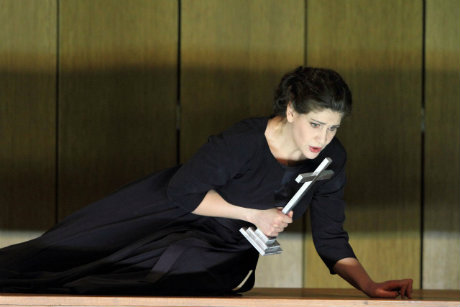 Dommage que ce duo d’anthologie ne soit pas porté par une direction d’orchestre plus inspirée puisqu’Asher Fisch se contente de “faire le boulot” avec honnêteté certes, mais sans élévation, ni emportement génial. Le point noir de la soirée demeure néanmoins la mise en scène de Martin Kušej dont la caractéristique principale n’est pas la « laideur » – notion toute subjective – comme beaucoup l’ont écrit à tort, mais la grande confusion. Certains tableaux sont réussis – l’accumulation finale d’immenses croix blanches – d’autres sont plus discutables comme une orgie générale où les corps s’emboitent dans d’épuisantes trémulations aux relents über alcoolisés. Certains détails exaspèrent : voir Jonas Kaufmann penché, le corps agité de soubresauts parce qu’il vomit hors champ est très largement explétif. Par contre la maison éventrée vue de haut est très réussie : des actions violentes d’y déroulent grâce au talent de “figurants acrobates” comme dans certains jeux vidéos archaïques… même si on ne comprend pas bien pourquoi certains personnages reprennent les attitudes tristement célèbres de la prison d’Abou Ghraib : une femme traîne ainsi un homme nu en laisse. Malgré quelques images saisissantes, il est impossible de comprendre le propos, sans unité aucune, de Martin Kušej. Mais quelle importance est-ce que cela revêt en comparaison de la prestation vocale d’Anja Harteros et de Jonas Kaufmann ? Absolument aucune puisque l’opéra est avant tout une affaire de voix…
