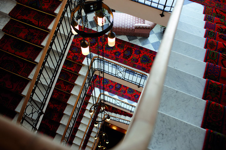 Mais l’épicentre intellectuel de Sils Maria est un hôtel construit en 1908 sur les plans de Karl Koller qui ressemble à un château fort perché avec noblesse sur une colline, sa silhouette crénelée se détachant sur un paysage de début du monde. Le Waldhaus (“maison de la forêt”) est toujours la propriété de la famille qui lui fit voir le jour : depuis 2010, la cinquième génération est aux commandes avec Claudio et Patrick Dietrich. Presque rien n’a changé depuis l’ouverture, ni les immenses couloirs se terminant par des baies vitrées où des bergères sont installées pour converser et admirer des vues qui ont la semblance d’un tableau de Giovanni Segantini1, ni les parquets qui craquent délicieusement, ni le sublime piano mécanique Welte-Mignon de 19102, ni la salle à manger pleine des ombres amicales des hôtes célèbres qui s’y assirent. À peine a-t-on rajouté une piscine seventies et un récent spa d’une classe folle avec sa géométrie parfaite. Le Waldhaus est un endroit hors du temps, pas un de ces palaces clinquants où l’on biberonne du Petrus à la bouteille pour faire le malin au restaurant. Il n’est pas surprenant qu’il draine une clientèle d’habitués où se croisent cinéastes (Visconti ou Chabrol qui y tourna Rien ne va plus et prépara un steak tartare pour 50 personne qui reste dans les mémoires) plasticiens (Beuys, Richter), musiciens (Bowie, Honegger, Klemperer) ou écrivains (Mauriac, Moravia). On allait oublier l’iconoclaste homme de théâtre Christoph Marthaler, un familier de l’établissement qui a fêté son centenaire en 2008 avec un spectacle performance dadaïste et déambulatoire où l’on chantait du Wagner à plat ventre sur le court de tennis ! Plus conventionnels, Thomas Mann et Hermann Hesse – qui considérait l’hôtel comme un « avant-goût du paradis » – s’y rencontraient régulièrement avec leur famille, pour marcher, manger, discuter… Et le Loup des steppes de résumer le charme d’un lieu à nul autre pareil qui réside in fine dans sa simplicité, un lieu où l’on finit toujours par retourner : « Nous y rencontrons chaque année des gens qui, comme nous, reviennent régulièrement et dont nous nous sommes faits des amis. »