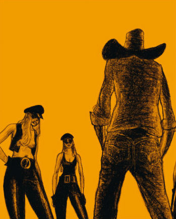 Pour vivre sereinement son amourette avec un cow-boy moustachu façon Burt Reynolds dans Cours après moi, shérif, La Fille aux cheveux de feu devra échapper à un gang d’amazones motorisées qui bastonnent, seins nus, tous les mâles osant se trouver au travers de leur passage. Les amants fendent l’air ensemble, mais se perdront de vue… Christophe “Blinde” et “Barbarella” Carlotti nous triballent à l’arrière de leur motocyclette tout au long d’un road trip, entre conte musical avec Smith & Wesson et western moderne sous LSD. Shebam ! Pow ! Pop ! Vroum !