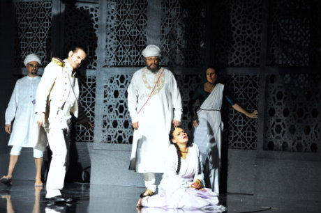 La mise en scène est d’un classicisme de bon aloi : d’immenses claustras en mouvement permanent rythment l’espace et l’action. Pour Paul-Émile Fourny, elles « marquent, à la fois, la transparence et l’impossibilité d’accéder à l’autre, une dualité placée au cœur de l’opéra qui correspond à la société où évolue Lakmé – avec le système de castes – et aux relations entre les Hindous et les Britanniques ». Les costumes sont d’une belle élégance : uniformes blancs et saris colorés – mais pas trop, ce n’est pas Bollywood, tout de même – évoluent avec douceur dans le délicat tintinnabulement d’une musique au puissant et charmant exotisme. Dans cette partition éminemment française, la troupe du Theater Bonn livre une prestation de belle tenue – mention spéciale à Miriam Clark, impeccable dans les difficultés du rôle-titre – même si, bien souvent, la prononciation demeure approximative et peu audible. Pas de quoi gâcher néanmoins le plaisir de la redécouverte d’une œuvre trop rarement donnée dans les salles hexagonales.