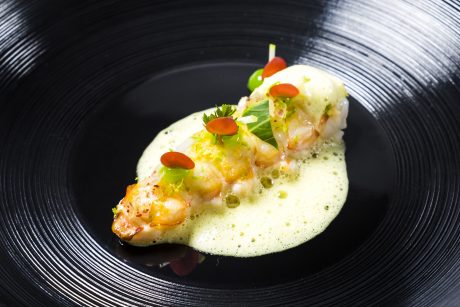 « Cette salle à manger apparaissait nue, emplie de soleil vert comme l’eau d’une piscine », écrivait Marcel Proust dans À L’ombre des jeunes filles en fleurs1. C’est un sentiment d’essence similaire qui nous étreint en entrant dans une pièce intime, hors du temps, dont les amples baies vitrées permettent une intense rêverie nourrie par les eaux paisibles du Rhin qui coulent, irréelles, en contrebas. Voilà un cadre idyllique respirant la perfection d’une autre époque pour une odyssée gastronomique accompagnée de vins surprenants, comme un Chardonnay des Grisons de Francisca et Christian Obrecht2. Aérien, ciselé et tendu à l’extrême, il entre en résonance avec un carabinero au citron valsant avec décontraction avec une pincée d’algues. Mais le point d’orgue du repas est un des “plats signature” de Peter Knogl, un invraisemblable pigeon de Bresse et sa douce mousseline de carottes : le poivre de Tasmanie joue à cache-cache avec des épices marocaines et des réminiscences de cèpes dans une sauce – un art dans lequel le chef excelle – à tomber par terre. Il faudra toute l’acidité maîtrisée d’une pomme verte, trompe-l’œil presque parfait à l’allure de Granny Smith rempli d’un yaourt à la verveine, pour revenir à soi.