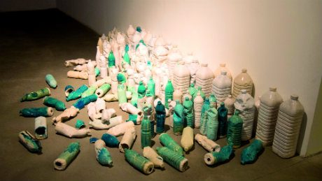 Dans le cadre d’e.cité – cycle de manifestations visant à promouvoir la scène contemporaine européenne à Strasbourg –, Apollonia a mis le cap sur Berlin sous le signe de la Philoxénie, concept qui, pour résumer, invite à faire bon accueil à l’étranger. Ce voyage vers l’Autre est aussi une réflexion sur la place des migrants dans nos sociétés occidentales avec notamment une Table-ville, en porcelaine de Stephen Wilks, véritable « territoire de partage » pour l’artiste où chacun doit trouver sa place, qui voisine avec Bottle river, son installation composée de 1 400 bouteilles de céramique, armée silencieuse et invisible renvoyant à la tragédie migratoire. Pour sa part, Stefanie Bürkle questionne une identité complexe à travers les espaces de vie de familles turques rentrées au pays… où abondent les références à la banlieue pavillonnaire made in Germany ! Face à cette installation vidéo intitulée Migrating Spaces, se découvre Making Waves de Daniel Seiple, retranscription artistique d’une épopée aquatique sur un bateau construit avec des réfugiés syriens. Grâce à ces propositions et à des rencontres organisées sous la tente faite de gilets de sauvetage du collectif KUNSTrePUBLIK, Apollonia fait avancer le débat. (H.L.)