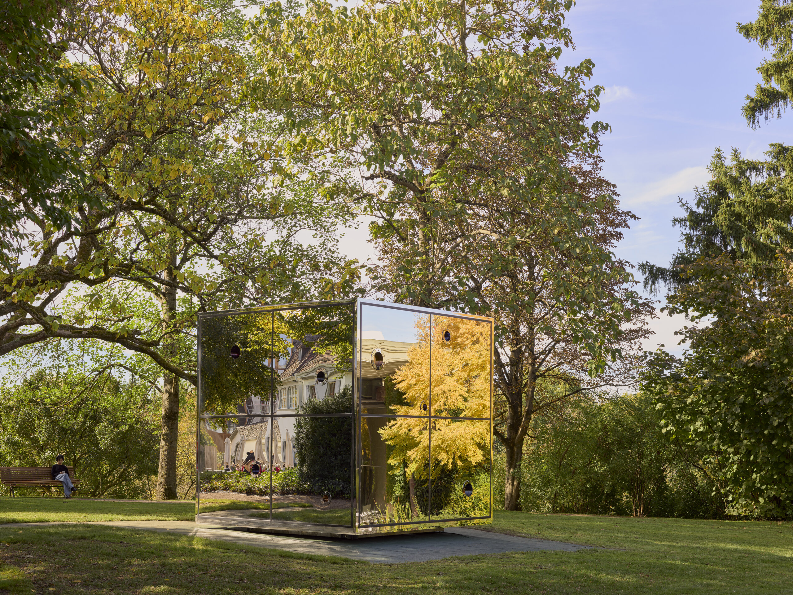 Née en 1929, Yayoi Kusama fait partie des rares plasticiennes à transcender les frontières de l’art contemporain : en témoignent, par exemple, des collaborations avec Louis Vuitton. La dernière en date avait fait un tabac : tandis que les pièces de la collection capsule Creating Infinity (2023) s’arrachaient comme des petits pains, d’immenses effigies de la Japonaise étaient installées à New York et Paris. N’en demeure pas moins que son travail est des plus exigeants. Regroupant plus de trois cents œuvres, cette ample présentation en est un éclairant témoignage, qui débute dans le parc de la Fondation, avec Infinity Mirrored Room – Illusion Inside the Heart (2025), cube aux faces réfléchissantes invitant à observer, à l’intérieur, des mondes cosmiques multicolores. Et de se perdre dans ce planétarium subtil fait de kaléidoscopes géométriques aux couleurs changeantes, permettant de tutoyer les astres et / ou de plonger au plus profond de soi. En contrebas, dans les bassins imaginés par Renzo Piano, flottent douze cents boules argentées, réactivation contemporaine de Narcissus Garden – capturant le reflet des visiteurs, en référence au mythe grec –, intervention « pirate » qui avait secoué la Biennale de Venise en 1966.
