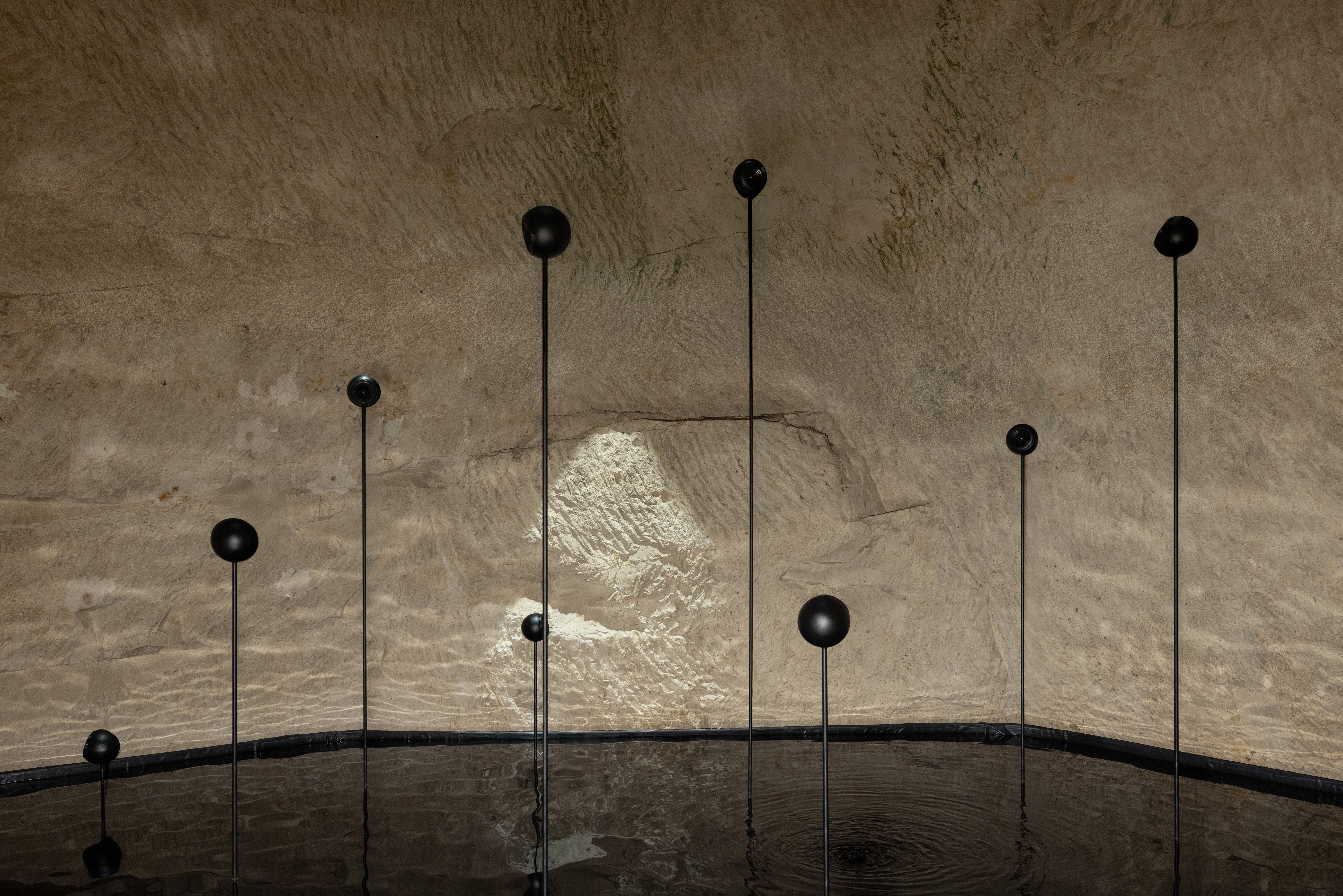 Installation de Julian Charrière prenant place dans les crayères de la Maison Ruinart, Chorals sonne comme un avertissement.