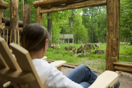 Cette fois, on s’imagine au cœur d’un roman de Jack London, occupé à observer une meute sauvage. Implanté en Moselle, le Parc de Sainte-Croix propose de dormir avec les loups dans la tanière et la cabane du trappeur. Dès cet été, deux lodges supplémentaires permettront de se familiariser avec les nouveaux loups timberwolfs. Ceux qui appréhendent le face-à-face matinal avec les canidés peuvent tenter l’expérience à distance dans l’une des cabanes aux formes insolites, perchées dans les arbres. Dans un autre coin du parc, de grandes tentes en toile installées en bivouac offrent une vue incroyable sur la plaine de 54 hectares où vivent plus de 140 cervidés. À l’automne, les campeurs pourront assister au brame alors que d’autres prendront leurs quartiers dans les yourtes pour observer aurochs et chevaux des steppes.