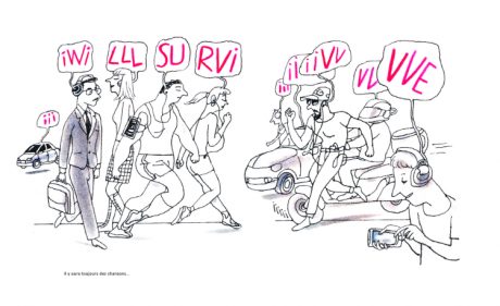 Avec Philippe, nous avons petit à petit commencé à faire nos pages chacun de notre côté avant de les rassembler. Finalement, c’est lors des concerts dessinés avec Rodolphe Burger que nous retrouvions ces moments de fusion, lorsque nos dessins se mêlaient sur l’écran. Mais c’est dans la création musicale que s’imbriquent vraiment les harmonies, qu’il y a une alchimie précieuse, émouvante. Entre moi et Marcello Giuliani, bassiste d’Erik Truffaz, lors de l’enregistrement de Tout pour le mieux, la fusion était totale.