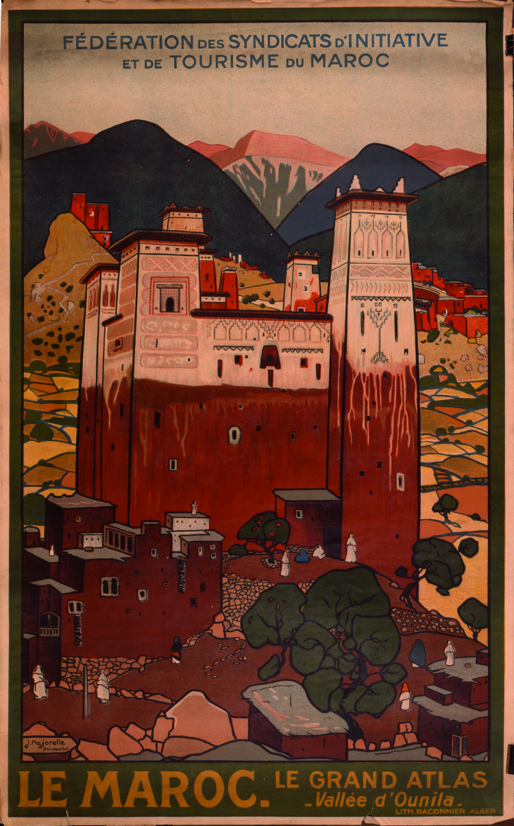 Essentiel est le rapport aux colonies qui peuvent être considérées comme une nouvelle frontière : des assiettes de Sarreguemines de la série Conquête de l’Algérie, l’uniforme du maréchal Lyautey natif de Nancy ou des vues du village sénégalais et du bazar tunisien de l’Exposition internationale de l’Est de la France (1909) témoignent d’une époque qui se déploie dans la seconde exposition intitulée Les Couleurs de l’Orient, au Musée des Beaux-Arts. Elle illustre la fascination qu’a généré l’Orient sur les artistes lorrains aux XIXe et XXe siècles qu’il soit fantasmé – comme l’envoûtante Hérodiade d’Henri-Léopold Lévy, les diaphanes odalisques d’Émile Friant ou les nus opulents et sensuels de Victor Prouvé – ou vécu. Les couleurs éclatent alors, tandis que la lumière se fait vive. Parmi ce riche corpus, on reste admiratifs devant les œuvres de Jacques Majorelle : surnommé le peintre des casbahs, il est en quête d’authenticité, refusant l’exotisme facile de nombre de ses pairs avec des compositions géométriques sobres et éclatantes à la fois ou des portraits de beautés à la peau d’ébène posant dans une nature souveraine dans laquelle « on croit respirer l’humide et pénétrante chaleur des forêts équatoriales », écrit-il. Pour les artistes de l’École de Nancy, ces terres lointaines sont aussi une source d’inspiration : vases rappelant les entrelacs des lampes en verre soufflé égyptiennes signés Émile Gallé ou formes et couleurs venues de la céramique de Kabylie pour Daum sont autant de ponts délicatement dressés entre la Lorraine et le monde.