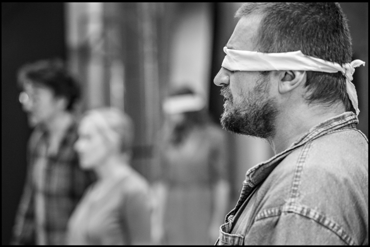 En effet, il n’y aura pas d’image. C’est un acte fondateur pour moi. La seule fois où j’ai utilisé la vidéo, elle n’a pas fonctionné à la première (rire) ! Ce n’est pas mon truc, au théâtre les images me distraient de l’essentiel. Nous faisons une pièce sur un cinéaste qu’on ne voit jamais faire un film comme Tarkovski revenait sur la vie d’Andreï Roublev qui peint sans qu’on voit une toile. Le challenge avec le texte final de Julien Gaillard2 est de reconstituer des plans racontés par des mots. Nous avons joués à décrire le dernier de Stalker, comme pour des aveugles. Cela s’est concrétisé au plateau en bandant les yeux des comédiens. Une partie de l’enjeu de la pièce est là : comment faire naître des images à ceux parmi le public qui n’auraient pas vu ses films ?