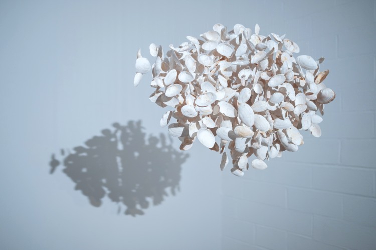 L’île reculée est par nature une prison : les Anglais déjà nous l’avaient appris en exilant Napoléon à Sainte-Hélène, rocher volcanique paumé au milieu de l’Atlantique, à près de 2 000 kilomètres de la Namibie. Après tout, ce n’est pas pour rien que le terme “isolement” dérive du latin insula… De la Marseillaise Yohanne Lamoulère, qui met en photographies deux mois de confinement passés sur un bras du Rhône (L’île, 2020) – à deux pas des villes et pourtant si proche du sauvage et du mystérieux – à Gilles Desplanques, qui se filme attendant Godot sur son Île de béton (2016) comme un pantin égaré sous un échangeur autoroutier, toutes les solitudes y passent. La plus romantique, avec les noires falaises ébréchées d’Ouessant, capturées par le regard de Cécile Beau (Isle, 2014)… comme la plus absurde, filmée par Olivier Crouzel à Yali (2021), poétique îlot blanc de la mer Égée devenu une véritable carrière à ciel ouvert, d’où l’on extrait de la pierre ponce par cargaisons entières pour bâtir dans nos contrées de jolies petites maisons soi-disant écologiques et bien isolées. Utopies exotiques et politiques désillusions s’entremêlent ainsi tout au long d’un parcours délicatement tissé, qui jamais complètement ne bascule et tient le visiteur suspendu sur un fil, tendu entre la réalité et la fiction. L’enchantement, lui, ouvre et clôt la circumnavigation. Au fracas initial de la houle répond en un fragile écho le carillon de nacre du nuage de coquillages créé par le plasticien sonore Stéphane Clor (Sans Titre, extrait d’Imaginary Soundscape, 2016), comme un éclat de beauté sereine après la tempête.