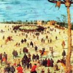 Les toiles du peintre né en 1525 et décédé en 1569 fourmillent de détails et clins d’œil à la région où il finira ses jours. Composition en plusieurs plans, profondeur de champs, juxtaposition de thématiques (religieuses, sociétales…), panoramas construits comme des puzzles à tendance narrative : l’expo commissionnée par Stefan Devoldere (professeur et doyen de la Faculté d’Architecture et d’Art à l’Université de Hasselt) est une « vue en plongée sur un paysage imaginaire », doublée d’un effet dramatique. Bruegel l’Ancien s’est saisi du site pour créer des « collages » mêlant éléments réels belges et autres parcelles de contrées parfois lointaines – comme des monts alpins incongrus – et rend hommage à une région toute en courbes, multipliant les lignes de fuites, à l’image de la topographie de la région de Pajottenland.