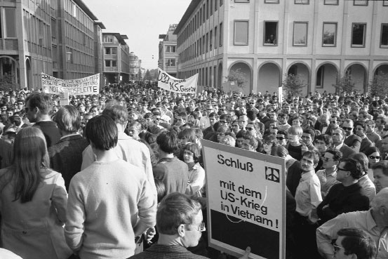 Studentendemo in Karlsruhe mit Transparenten gegen die Notstandsgesetze und den Vietnamkrieg, 16. Mai 1968 © Foto: 8/BA Schlesiger 1968