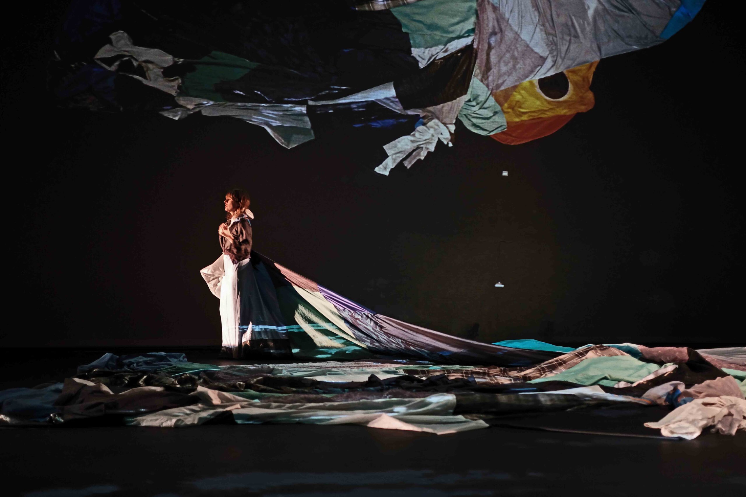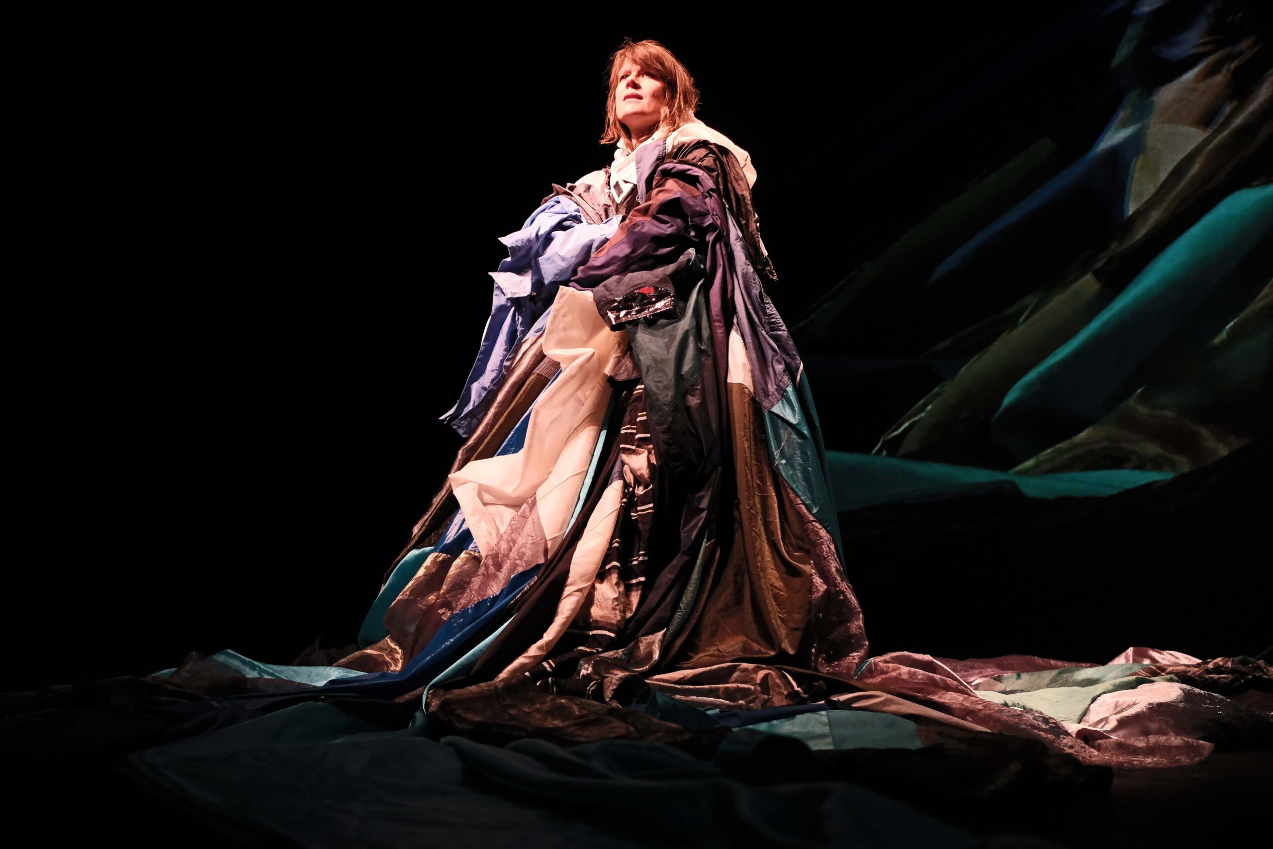 « Je ne sais pas encore à quoi tout cela va ressembler, mais on va récupérer les chansons déjà écrites et chantées par Camille, a cappella », reprend-elle. À cela vont s’ajouter les chants zoulous traditionnels du chœur d’hommes : « Ils ont des harmonies différentes, donc le but est de trouver une balance. Est-ce qu’ils vont chanter ensemble sur une même chanson ? Je n’en ai aucune idée. La façon dont ils interagissent sera toutefois l’élément central. » Ce qui est sûr, c’est que bien que le spectacle soit construit autour de l’eau, pas une seule goutte n’apparaîtra sur scène. « Trop évident », confirme-t-elle. À la place, des images abstraites se chargeront de l’évoquer, comme l’assemblage de vêtements de pluie aux nuances bleues, telle une vague gigantesque. L’utilisation de caméras filmant la prestation, depuis différents points de vue et en direct, renforce également l’immersion du spectateur dans cet univers conceptuel. Et même si la chorégraphe développe une thématique aussi engagée que dans ses précédents travaux, elle continue de garder ses distances avec le traitement de la colère : « J’éprouve ce sentiment, mais ce serait trop facile de l’utiliser. Au théâtre, il faut être plus créatif. Je préfère aborder des sujets sérieux avec une certaine forme d’humour, car cela permet de voir les choses de façon plus prudente et profonde », complète-t-elle.