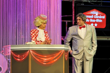 DCI. Je vous ai déjà dit que j’étais venu ici pour essayer de faire en sorte qu’il disparaisse. C’est une espèce de chancre mou dans le paysage culturel français. Depuis 40 ans, j’échoue, mais je m’accroche ! Cette langue est vivace. Elle devrait logiquement mourir… et pourtant les gamins dans les villages continuent de le parler. Nous ne mettons pas de dialecte mais quand un sketch est un peu fragile on installe deux répliques en alsacien, et ça repart !