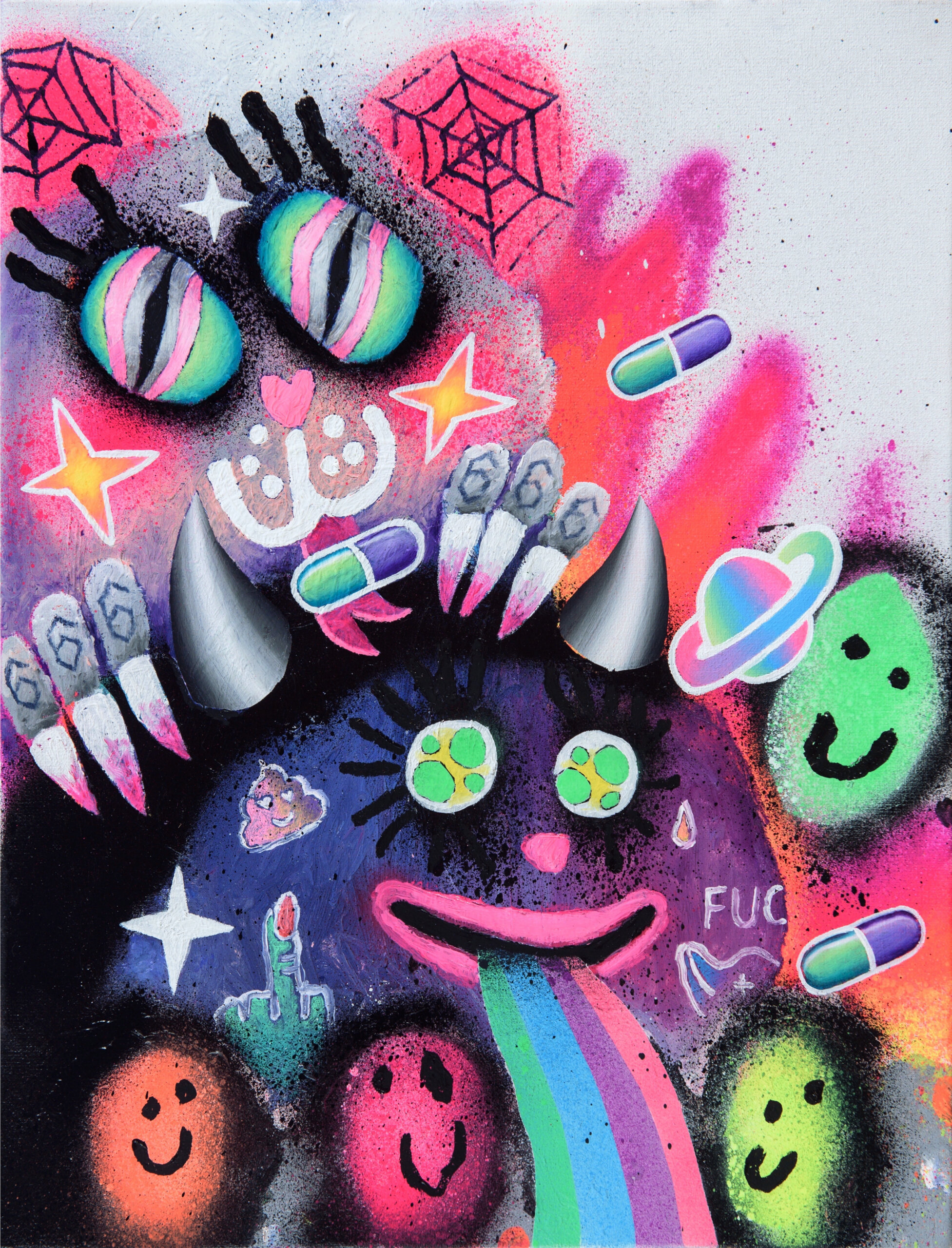 On aime tout particulièrement les portraits signés Atong Atem mettant en scène la diaspora africaine – entre regard postcolonial et réflexion sur l’identité – ou la « mignonnerie hyper-féminine » de Loulou João, qui questionne le racisme et l’altérité de manière ludique et colorée. Pour sa part, France Cadet jette un œil critique sur les évolutions technologiques, tandis que Bel Fullana crée des peintures criardes et insolentes ! Enfin, mention spéciale à Cone the Weird avec ses créatures à la plasticité surprenante qui envahissent la toile comme une colonie de vers.