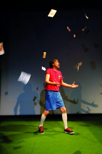 La compagnie mosellane L’SKBL1 fait partie des onze heureuses élues, bénéficiant du soutien de la Région Grand Est pour sa participation au Festival Off d’Avignon. Elle y présente le second volet d’une trilogie intitulée Amor, questionnant les cultures populaires et la mort. Entre costard blanc immaculé et maillot rouge du Chili, guitare électrique et batterie compulsive, Hugues Reinert et Kévin Lequellec retracent près d’un siècle de foot devant un écran blanc. Depuis la soule moyenâgeuse jusqu’aux considérations technico-tactiques actuelles s’y mêlent habilement icônes du ballon rond et leurs gestes de légende (Madjer, Panenka, Main de Dieu…), évolution du rock dont les stars sont inextricablement liées au football (d’Elton John aux Rolling Stones) et bons mots à la George Best, avant-centre de génie du Manchester United des sixties dont la légende veut que la tombe porte l’inscription “Pelé good, Maradona better, George Best”. Lorsqu’il finit sa carrière à Los Angeles, il avait une maison au bord de la mer. « Mais pour aller à la plage, il fallait passer devant un bar. Je n’ai jamais vu la mer », avoua-t-il.