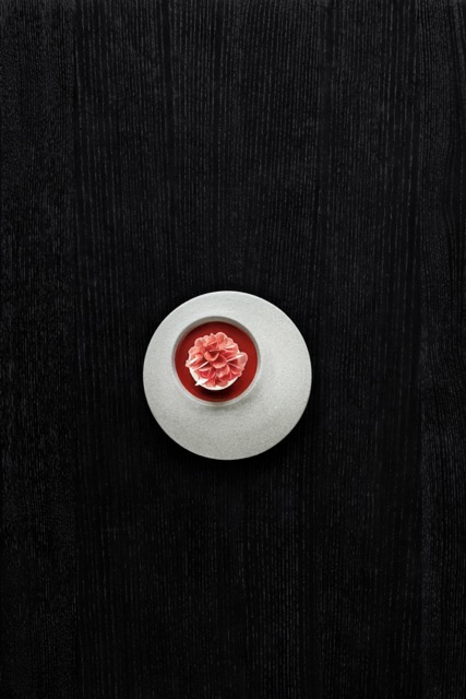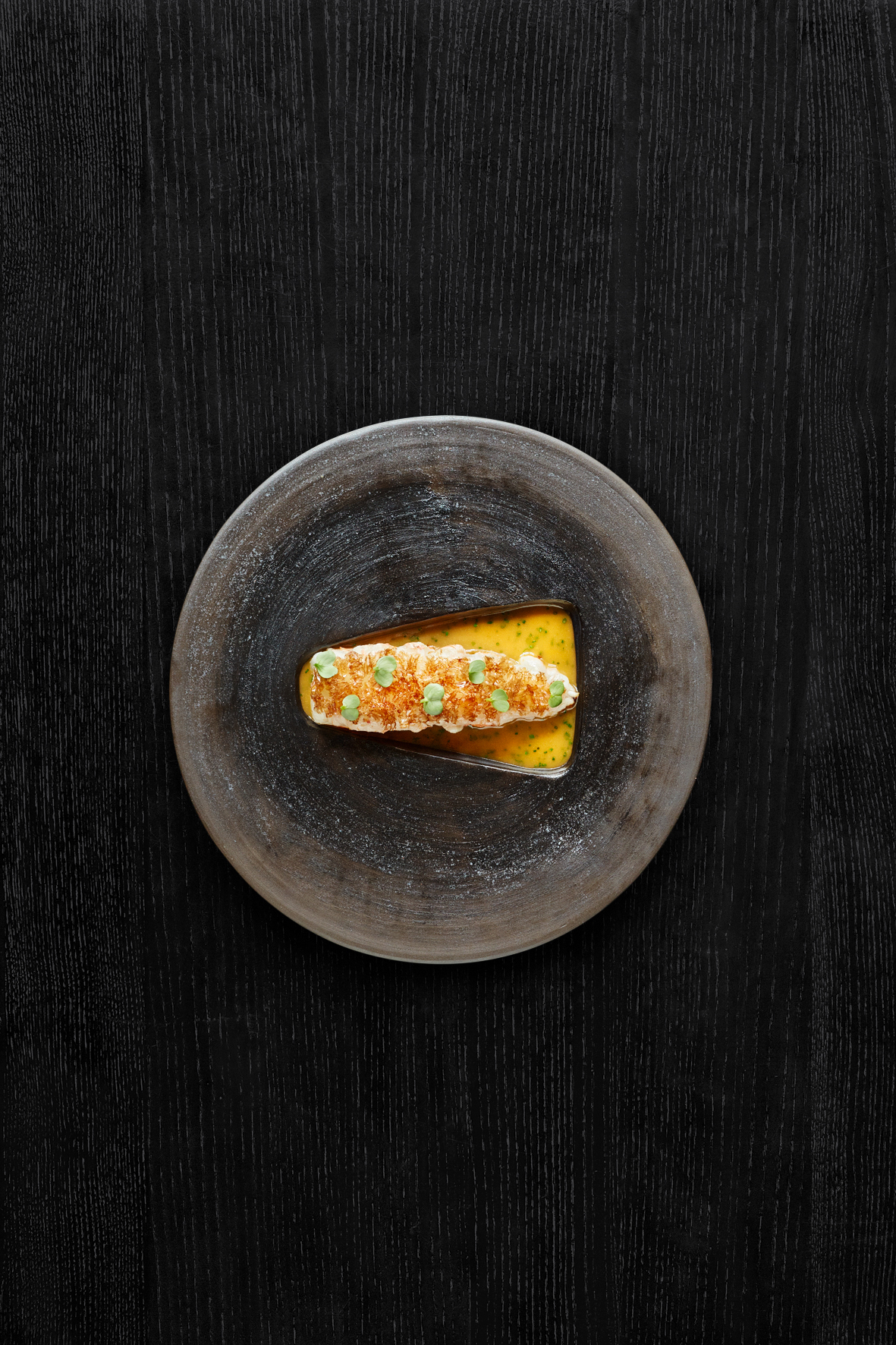 Dès le début de son apprentissage, à 15 ans, les choses sont claires : « Je ne voulais pas simplement « faire quelque chose », mais progresser. J’ai étudié les livres des grands chefs pour me lancer dans la haute gastronomie », explique-t-il. Le parcours est classique et semé d’Étoiles : il passe par les meilleures adresses, comme Steirereck im Stadtpark (Vienne), Le Gavroche (Londres) ou encore Arzak (Saint-Sébastien) – liste non exhaustive –, avant d’ouvrir le restaurant qui porte son nom, en 2013. Son credo ? « Laisser tomber », se marre-t-il, avant de préciser : « J’élimine tout ce qui obscurcit la vue de l’essentiel, pour me concentrer sur le goût pur », résume-t-il. Transcendant les frontières, le résultat est un génial mégamix d’une intense exigence entre échappées méditerranéennes – « À chaque voyage en Grèce, je découvre quelque chose de nouveau qui m’inspire et enrichit ma cuisine » –, substrat tiré de la haute tradition française (avec des sauces incroyables), discipline autrichienne et expérimentations débridées. Les nouveaux plats « naissent d’abord dans ma tête ou sur papier. Je réfléchis le mieux la nuit. C’est là que la plupart des créations viennent au monde. Le silence me libère », confie Konstantin Filippou dont l’art se déploie dans un cadre sombre et sobre. Certains dîneurs ont une vue imprenable sur une cuisine semi-ouverte où ils découvrent un ballet cool et millimétré, tandis que le dressage est achevé sur un comptoir, au vu de tous.