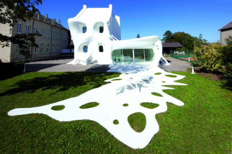 Sculpture ou bâtiment ? Christophe Berdaguer et Marie Péjus ont réalisé une maison fantomatique, adjointe au centre d’Art La Synagogue de Delme : un lieu de résidence créé en 2012 partant d’une maison existante que le duo d’artistes a recouvert de polystyrène puis de résine, comme une seconde peau.
