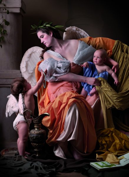 Pensons par exemple à un visage de femme étrusque en terracotta portant un altier bandeau ou à une toile de 1864 signée Franz Xaver Winterhalter montrant une élégante arborant fièrement un précieux monogramme de diamants : de vrais bijoux qu’on croirait utilisés comme modèles entrent en résonance avec ces œuvres. Notre coup de cœur ? La série Jewellery Depicted (2010) de Maisie Broadhead où pièces précieuses faites main et photographies entretiennent un subtil dialogue, entre réalité artisanale et fiction artistique.