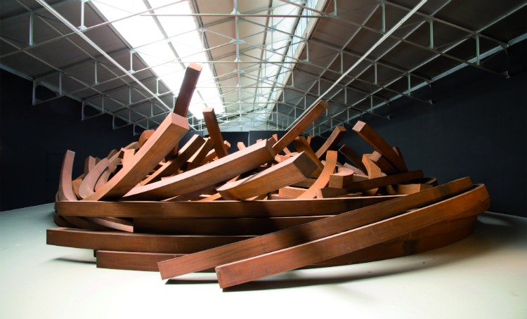 En ce site où s’élevait une scierie, on ne produit plus rien (les pièces de Venet sont fabriquées en Hongrie, dans “son” usine), mais on conserve des sculptures, expose des artistes internationaux mis à l’honneur chaque année (James Turrell l’an passé, Fred Sandback et ses fils de laine tendus cet été) et organise parfois des performances : une lecture des textes de Venet par le poète américain Kenneth Goldsmith est programmée le lendemain de notre visite. Le moulin ne tourne plus, mais les idées continuent à fuser : le plasticien rêve actuellement d’un « geste artistique très fort », d’une œuvre monumentale en acier (voire même en béton) qu’il installerait sur un terrain d’un hectare fraîchement acquis, à proximité. En attendant, il s’attelle à la mise au point d’une sculpture de 75 mètres de diamètre, placée prochainement sur l’autoroute entre Namur et Luxembourg. Nous flânons à travers ses lignes indéterminées, arcs ou diagonales, traversons un pont-tube chevauchant la Nartuby, rivière capricieuse qui inonda et ravagea le terrain en 2010… Derrière l’austérité et la radicalité, l’émotion. Et la dévotion. « Si une religion est célébrée ici, c’est bien celle de l’Art », confie Alexandre Devals. Bernard Venet acquiesce : « La nature sert d’écrin aux œuvres et l’architecture doit les mettre en valeur. Toute l’énergie produite ici est mise au service de Richard Long, Philip King, Robert Morris », autant de personnalités sacralisées.