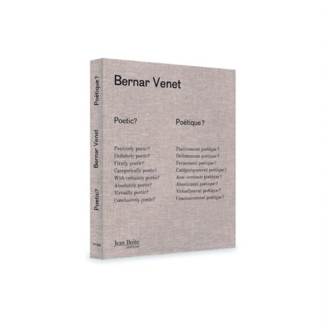 Nous sommes au cœur de l’été caniculaire, cherchant à pénétrer dans la propriété du Sud de la France de Bernar Venet (né en 1941). Le soleil tape fort dans l’arrière-pays varois. Le mercure grimpe tandis que, la langue pendante, nous tournons autour de cette imprenable citadelle en un vaste jardin verdoyant de quatre hectares et quelques. Une cascade, inaccessible îlot de fraîcheur, nous nargue lorsqu’enfin un portail s’entre-ouvre laissant apparaître, non pas Dr. No, comme nous l’imaginions à cet instant, mais Alexandre Devals, avenant directeur de la fondation et homme de confiance d’un artiste sans cesse par monts et par vaux, entre Paris et New York. Nous voilà dans l’ancienne usine de systèmes d’aiguillage de 2 000 m2 transformée en espace d’exposition et lieu d’habitation. Après avoir contourné un impressionnant Effondrement d’Arcs signé Venet, jeu de Mikado géant de 200 tonnes d’acier, nous traversons un corridor de métal conduisant à une immense pièce baignée de lumière avec vue sur une piscine au carrelage donnant envie à François Morellet de se l’approprier en la signant tel un ready made. Des milliers de livres, rangés dans une vaste bibliothèque allant jusqu’au plafond ou jonchant bureau et table basse, une reluisante cuisine ouverte digne d’un film de Michael Mann et, face à nous, Diane Venet (grande collectionneuse de bijoux d’artistes) proposant des rafraîchissements bien à propos. Élégamment assis dans un canapé en demi-lune, un homme à la crinière d’argent nous tend un lourd volume* de près de 400 pages : « Parlez de ma poésie », ordonne Venet dans un sourire, « c’est ce que je fais de mieux ! » Il s’agit d’une imposante anthologie (1967-2017) de 1350 grammes (nous l’avons pesé), davantage proche des Miscellanées, avec listes de noms, additions, équations et autres définitions, que des vers à la papa…